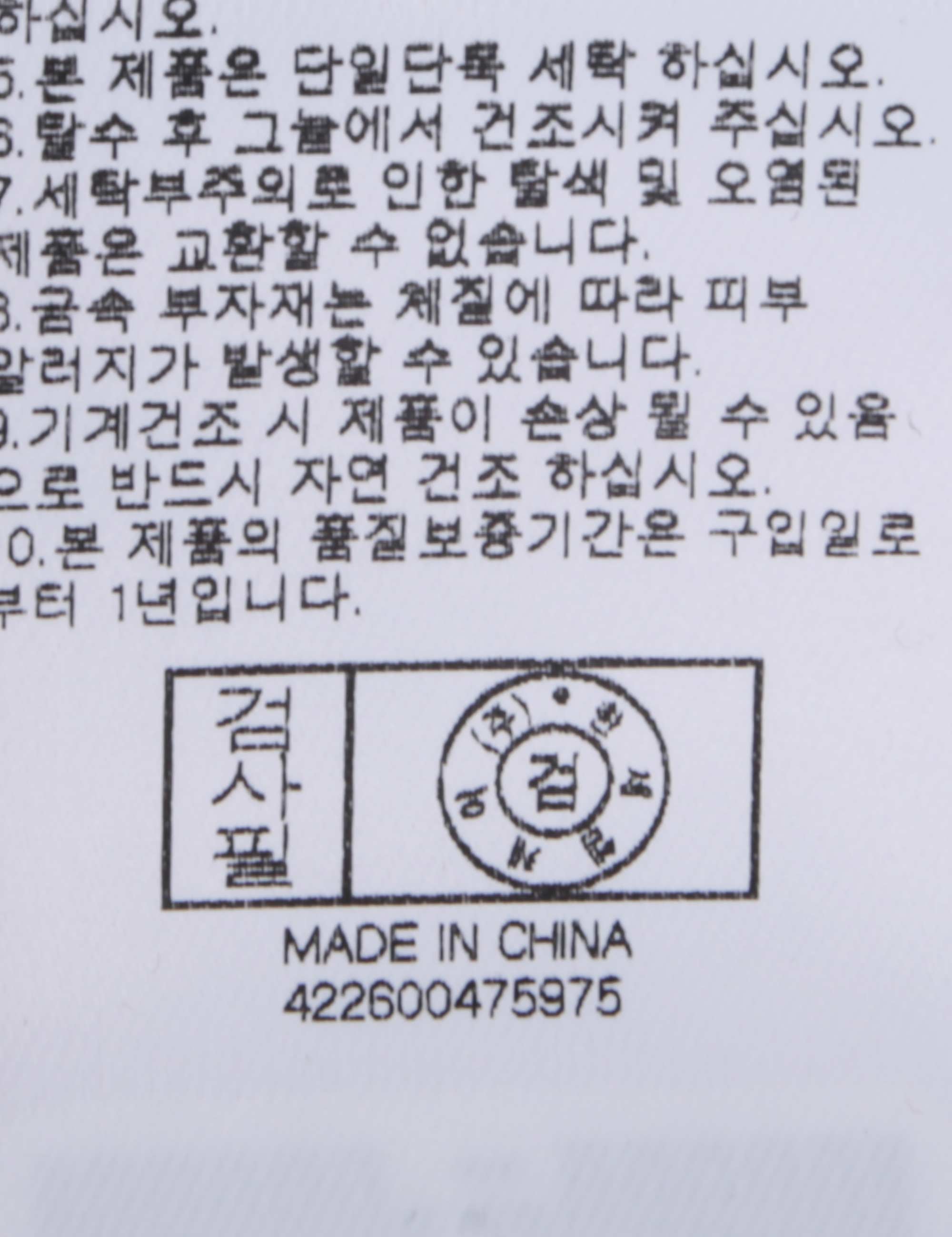 | 세탁방법 및 취급시 주의사항 | 본 제품은 단독 손세탁 하십시오.(케어라벨참고) |