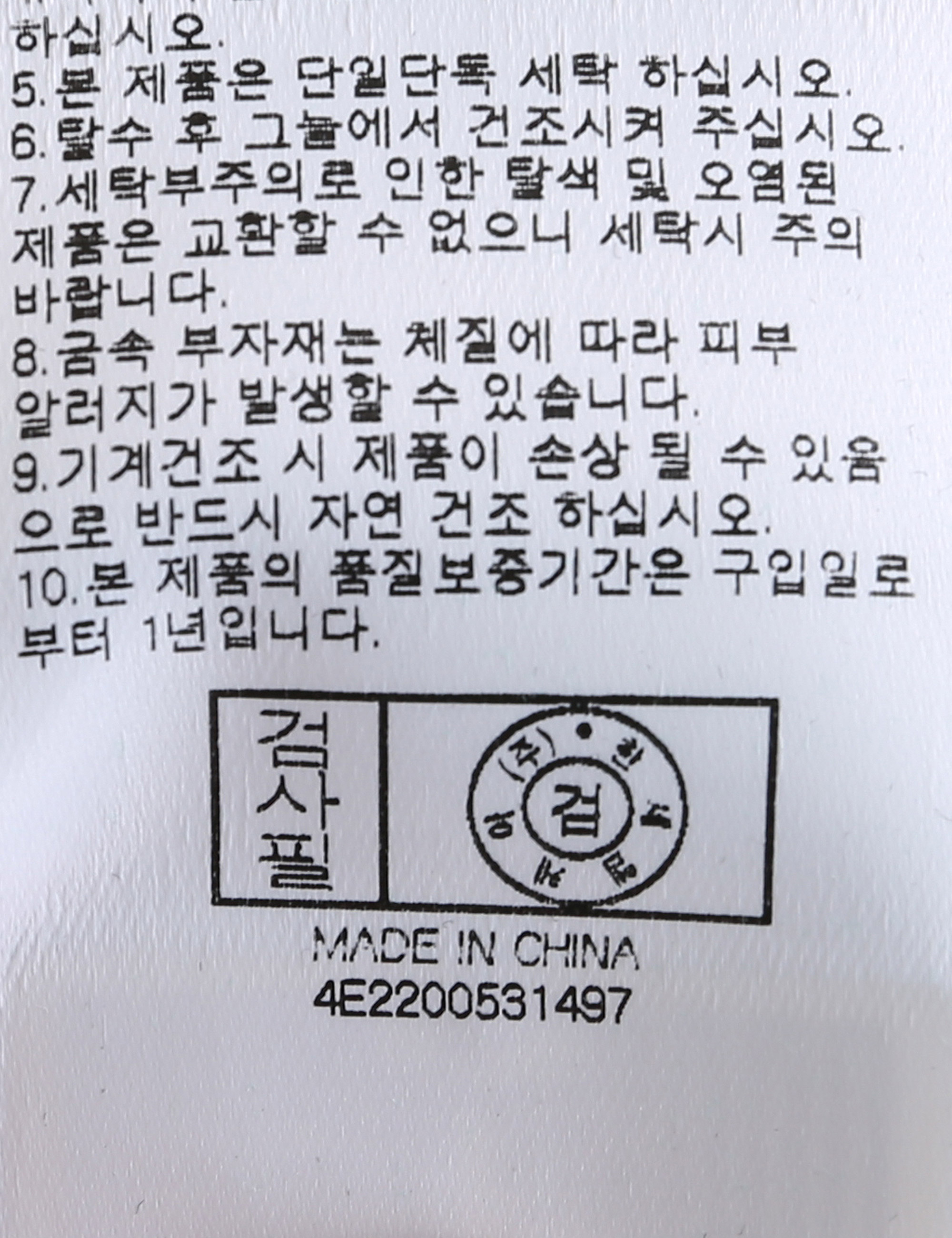 세탁방법 및 취급시 주의사항 본 제품은 손세탁 하십시오.(케어라벨참고)