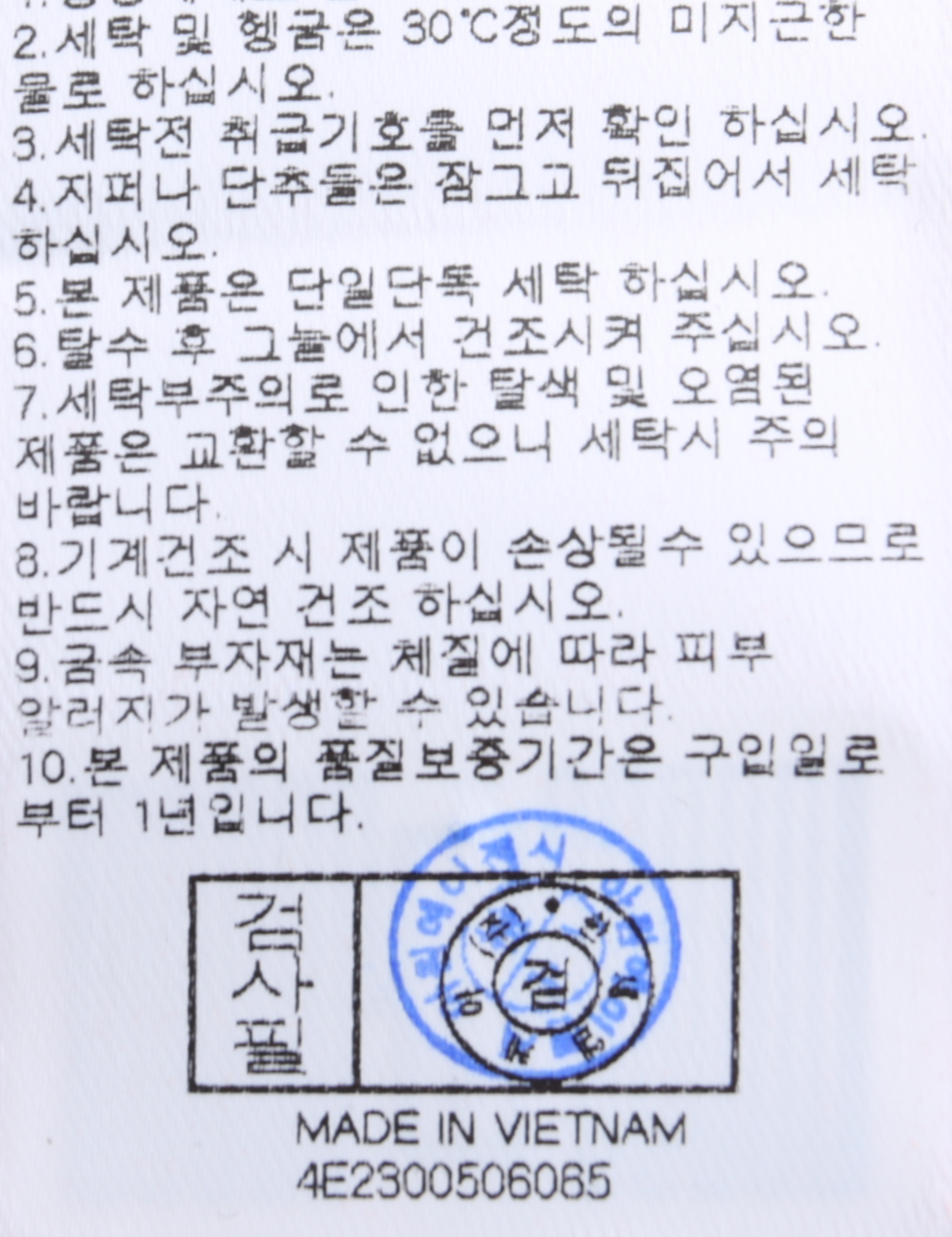 | 세탁방법 및 취급시 주의사항 | 중성세제로 단 시간내에 세탁하십시오.(케어라벨참고) |