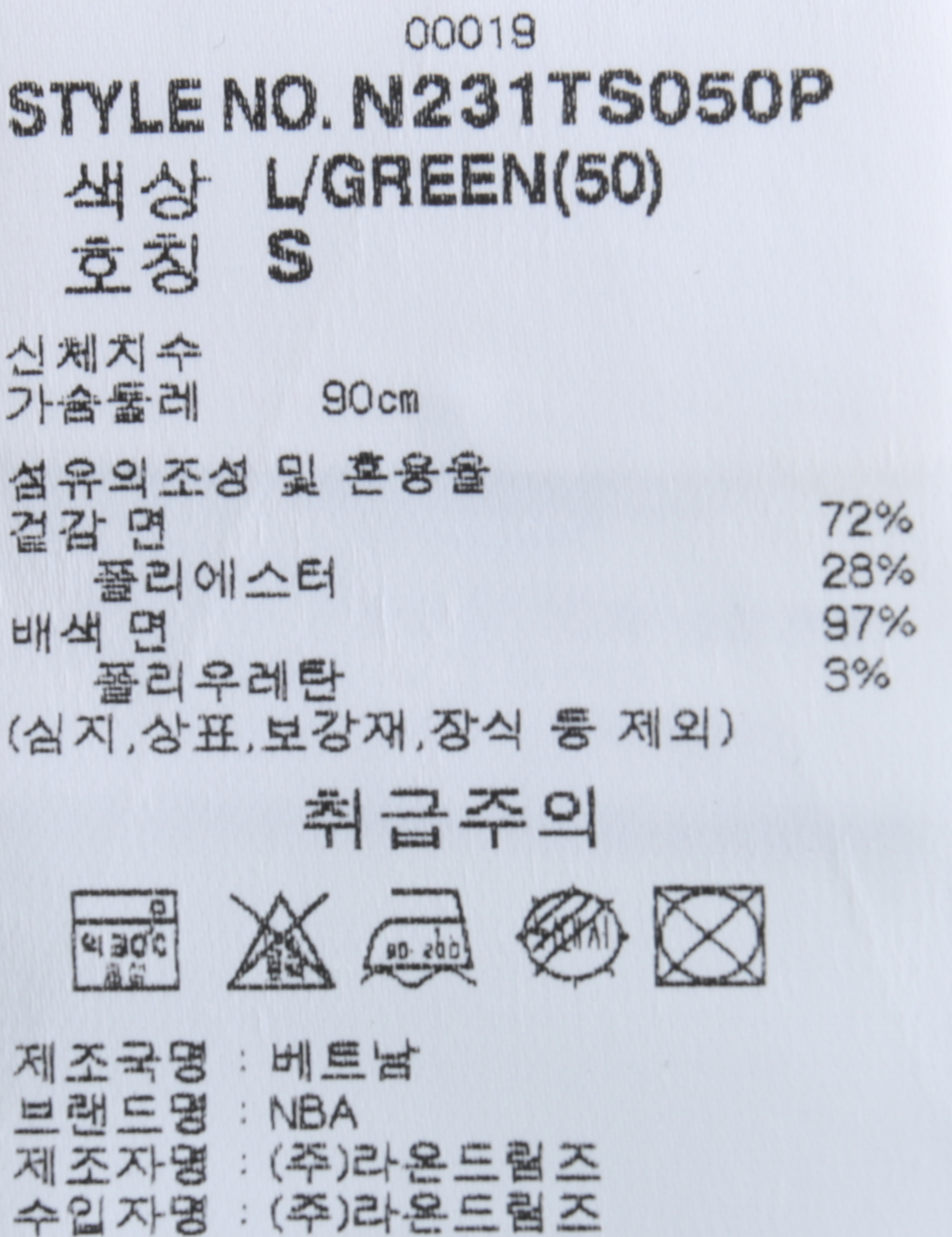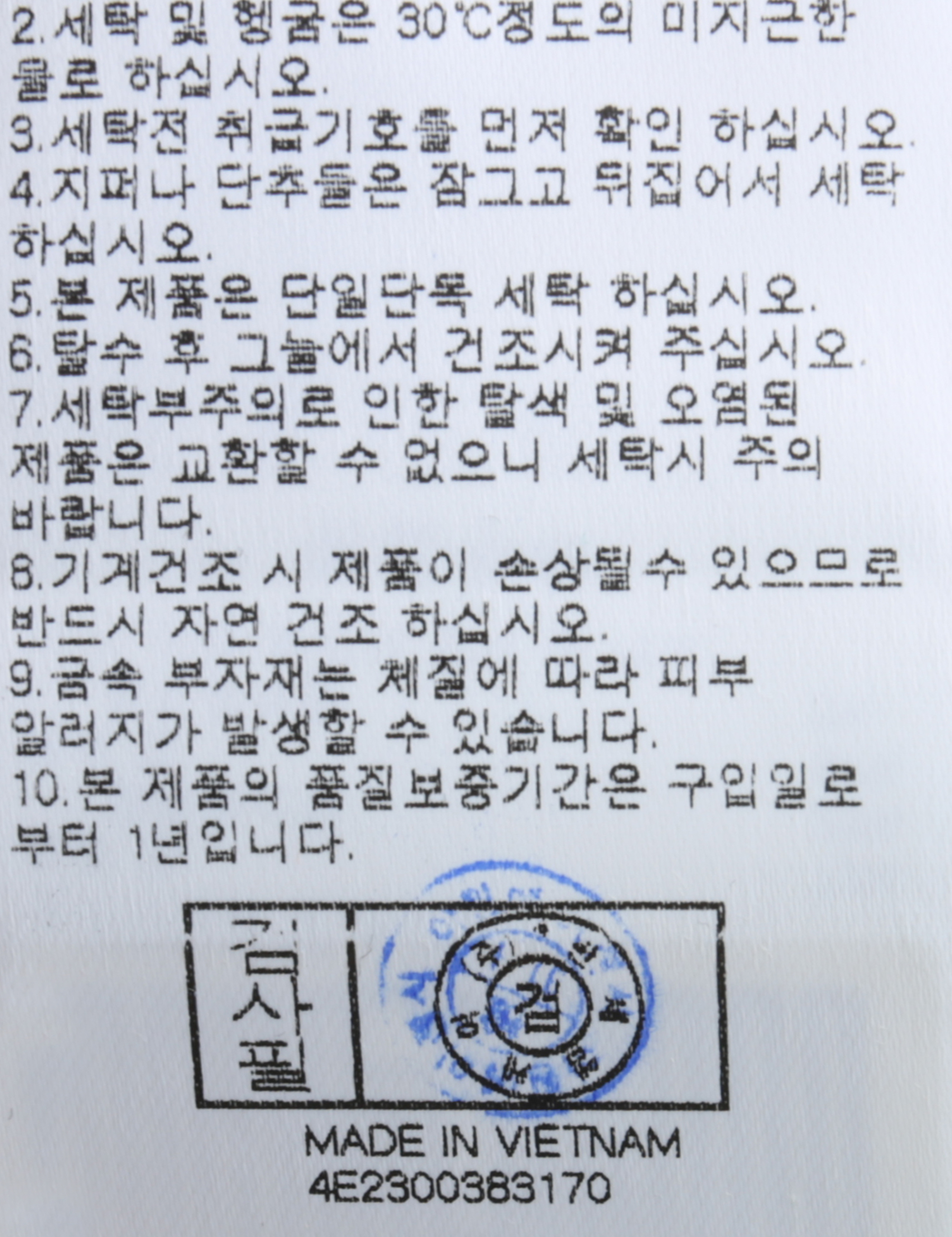 | 세탁방법 및 취급시 주의사항 | 중성세제로 단 시간내에 세탁하십시오.(케어라벨참고) |