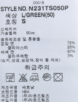 브랜드 홈 바로가기| 제품소재 | [겉감]면72% 폴리에스터28% [배색]면97% 폴리우레탄3% |