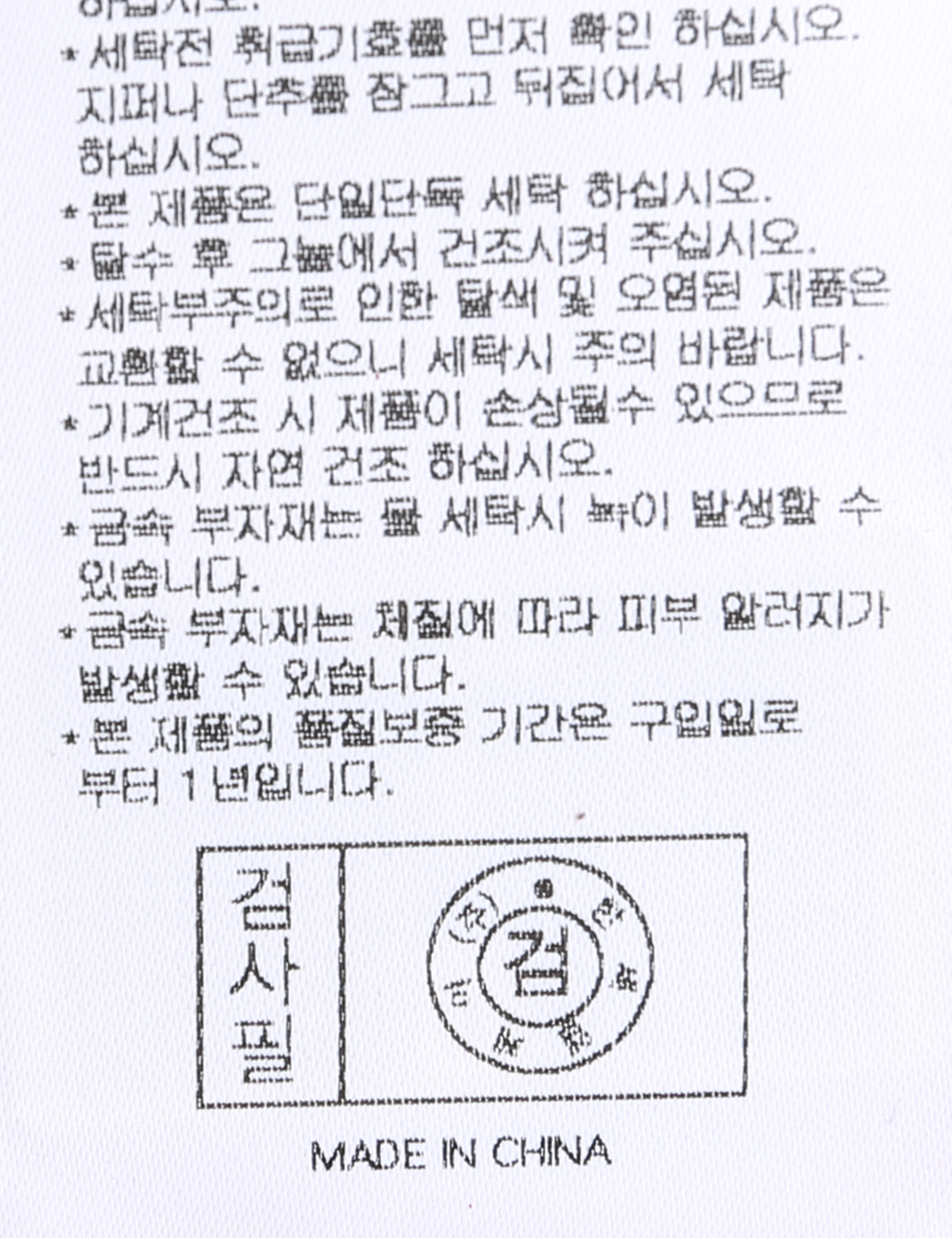 | 세탁방법 및 취급시 주의사항 | 중성세제로 단 시간내에 세탁하십시오.(케어라벨참고) |