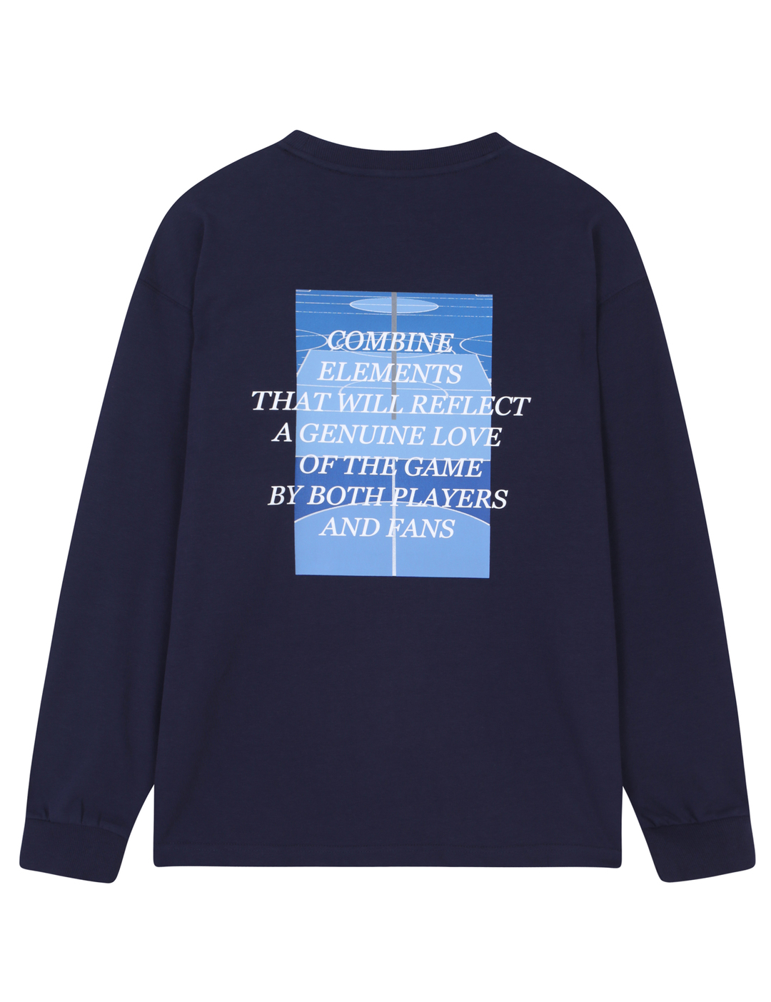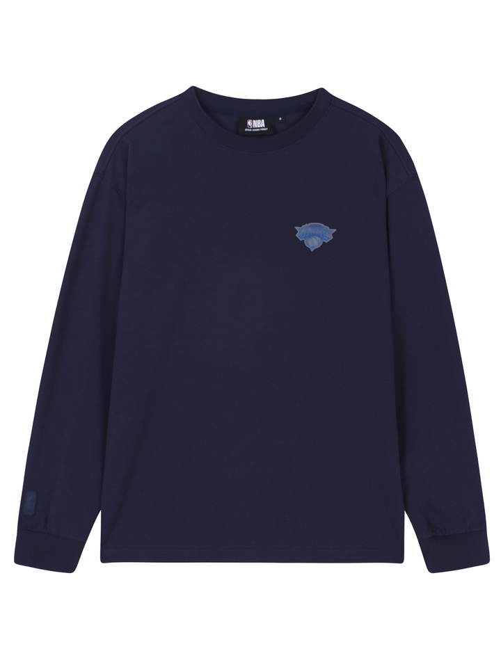 뉴욕 닉스 마크와 농구장 모티브 그래픽의 긴팔 쭉 티셔츠