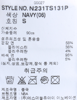 브랜드 홈 바로가기| 제품소재 | [겉감]면58% 폴리에스터38% 폴리우레탄4% [배색]면95% 폴리우레탄5% |