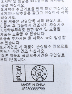 | 세탁방법 및 취급시 주의사항 | 본 제품은 손세탁 하십시오.(케어라벨참고) |