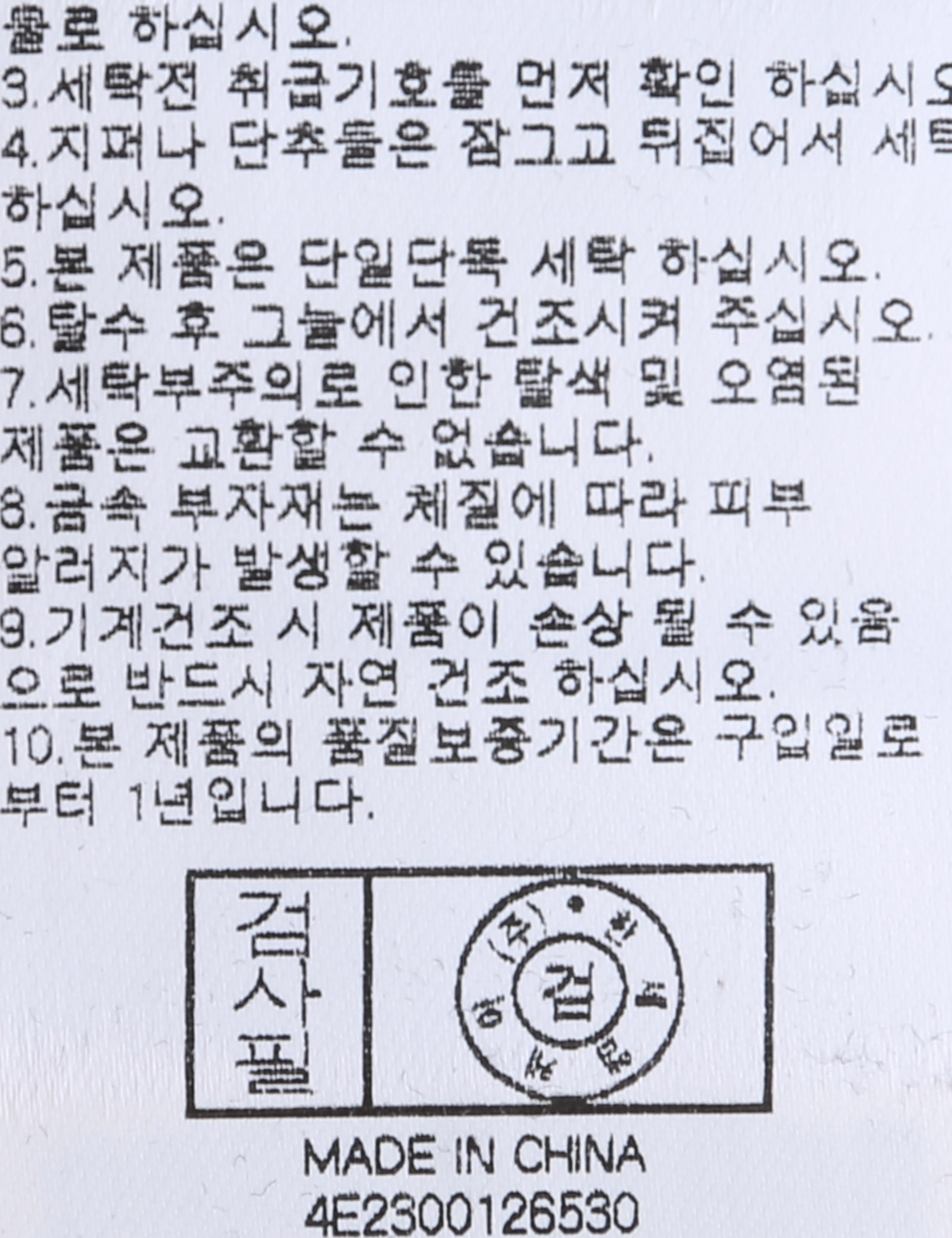 세탁방법 및 취급시 주의사항 중성세제로 단 시간내에 세탁하십시오.(케어라벨참고)