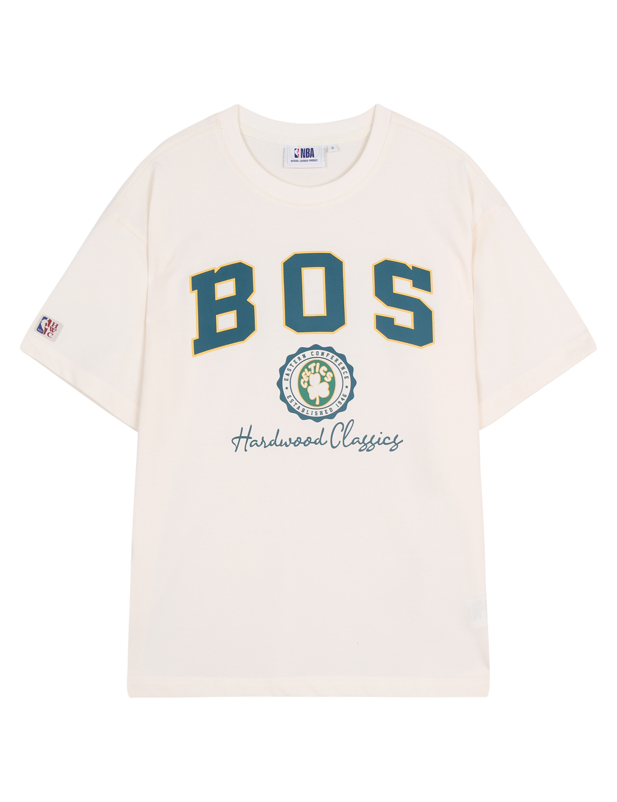 하드우드 팀 로고를 사용해 가슴에 빅하게 작업된 프린트가 포인트가 되는 스타일로,