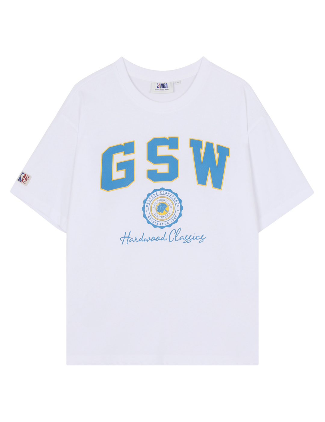 N232TS072P GSW 하드우드 클래식 팀 아치 그래픽 반팔 티셔츠(N232TS072P)
