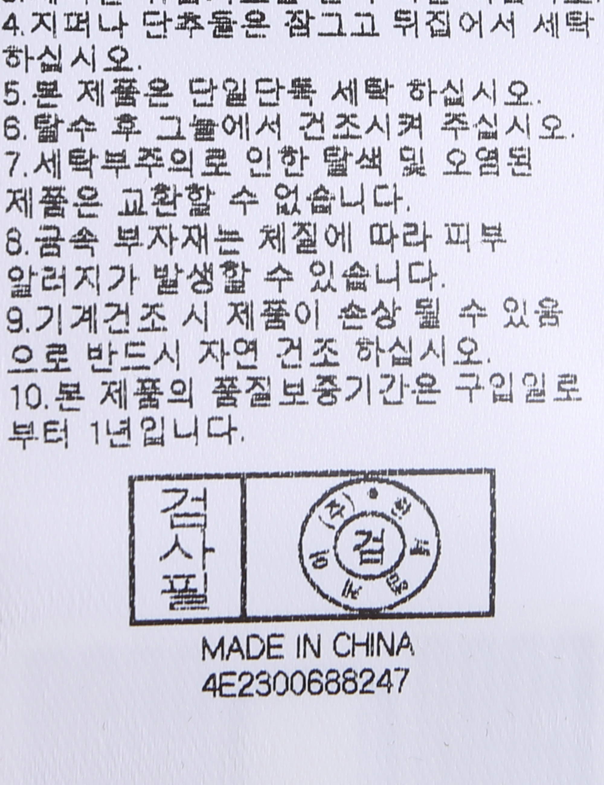 | 세탁방법 및 취급시 주의사항 | 본 제품은 손세탁 하십시오.(케어라벨참고) |