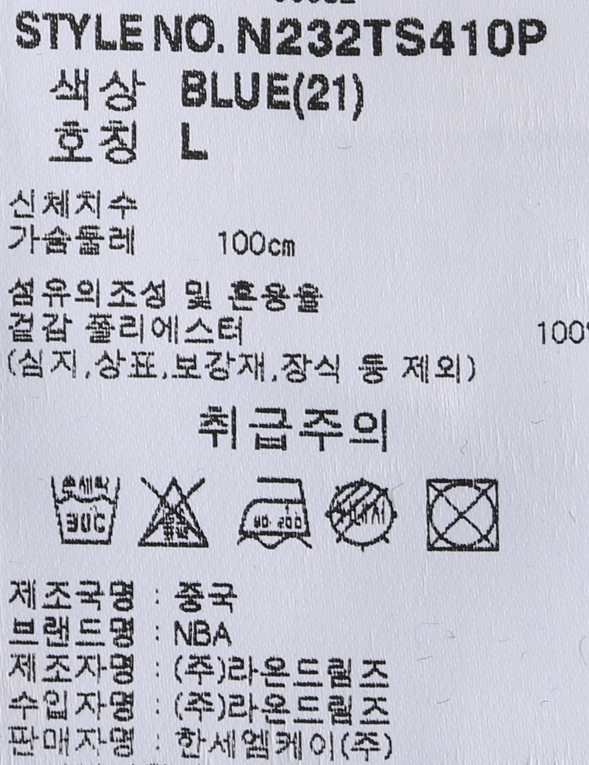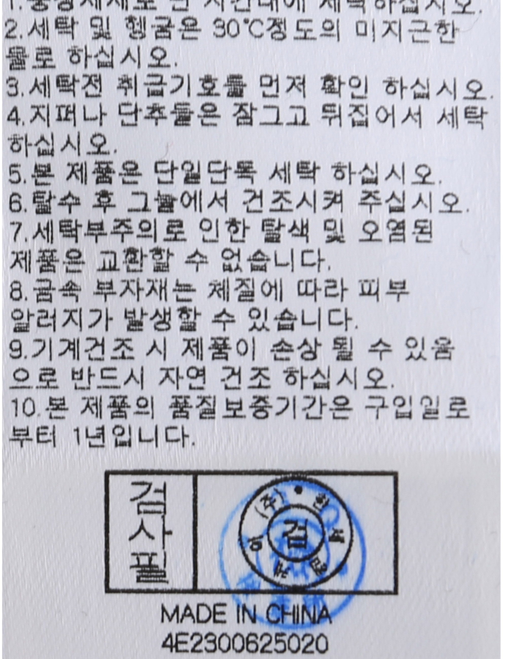 | 세탁방법 및 취급시 주의사항 | 본 제품은 손세탁 하십시오.(케어라벨참고) |