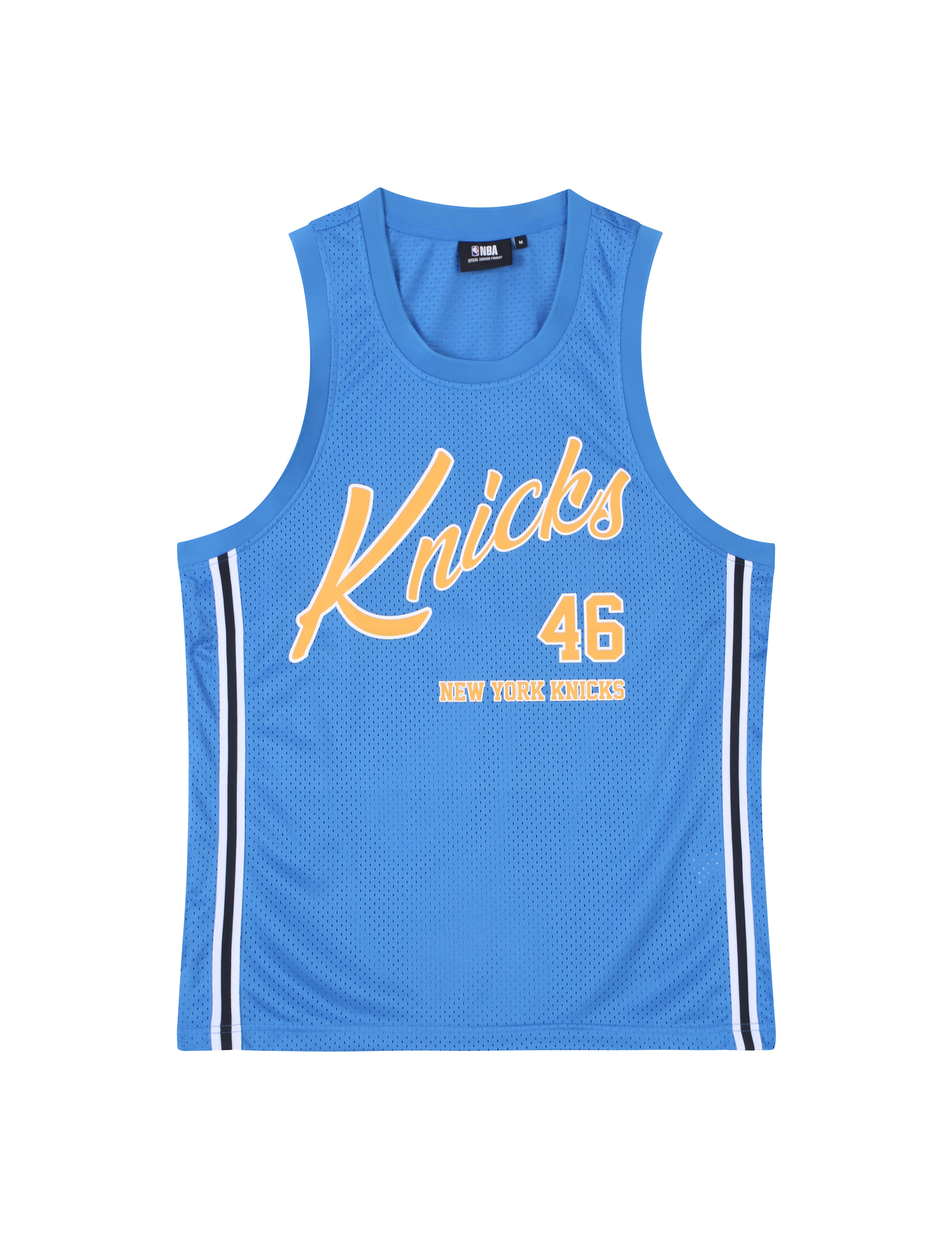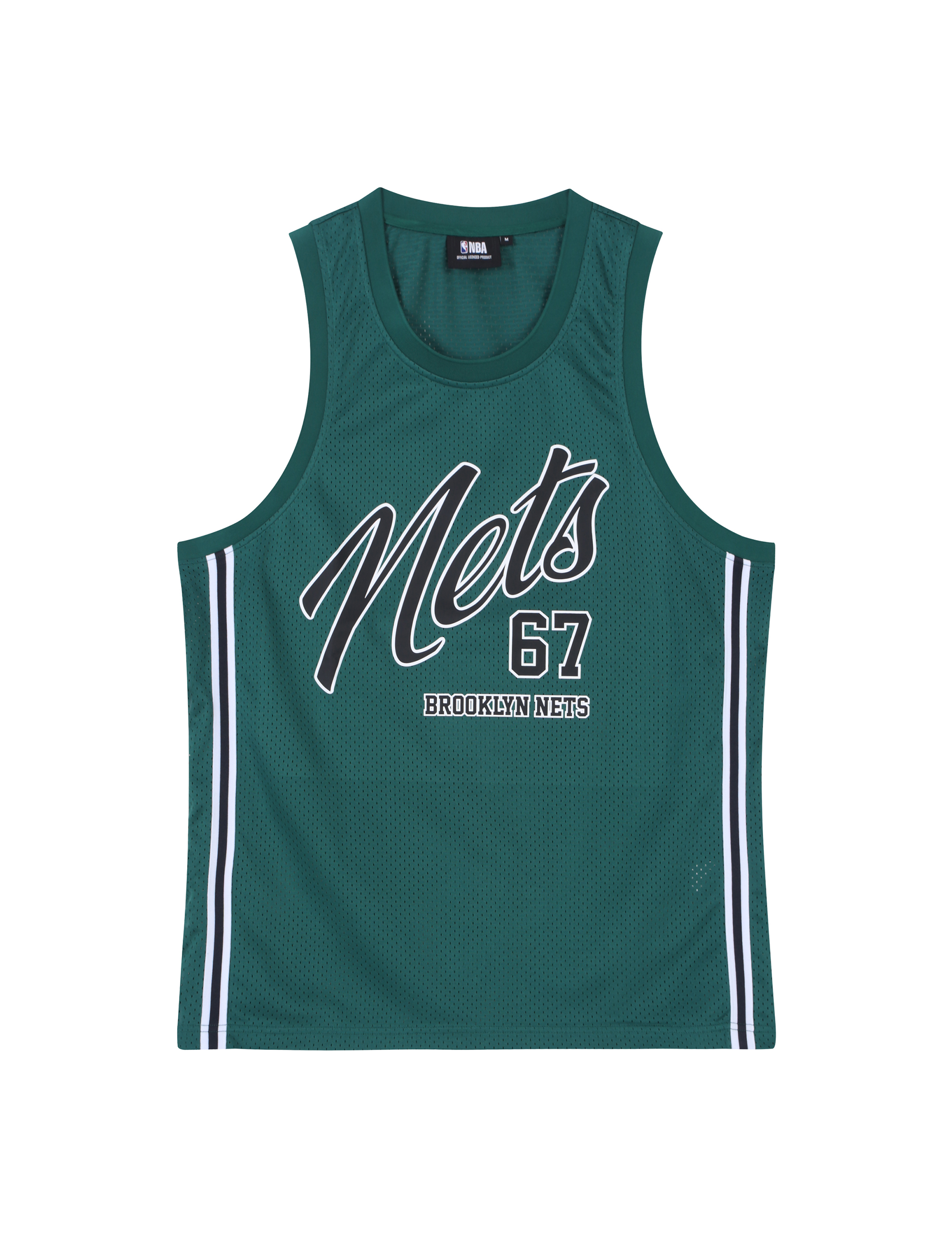 농구복 져지 스타일의 변형 아이템으로 팀별 아트웍을 강조한 스트릿 무드의 슬리브리스.