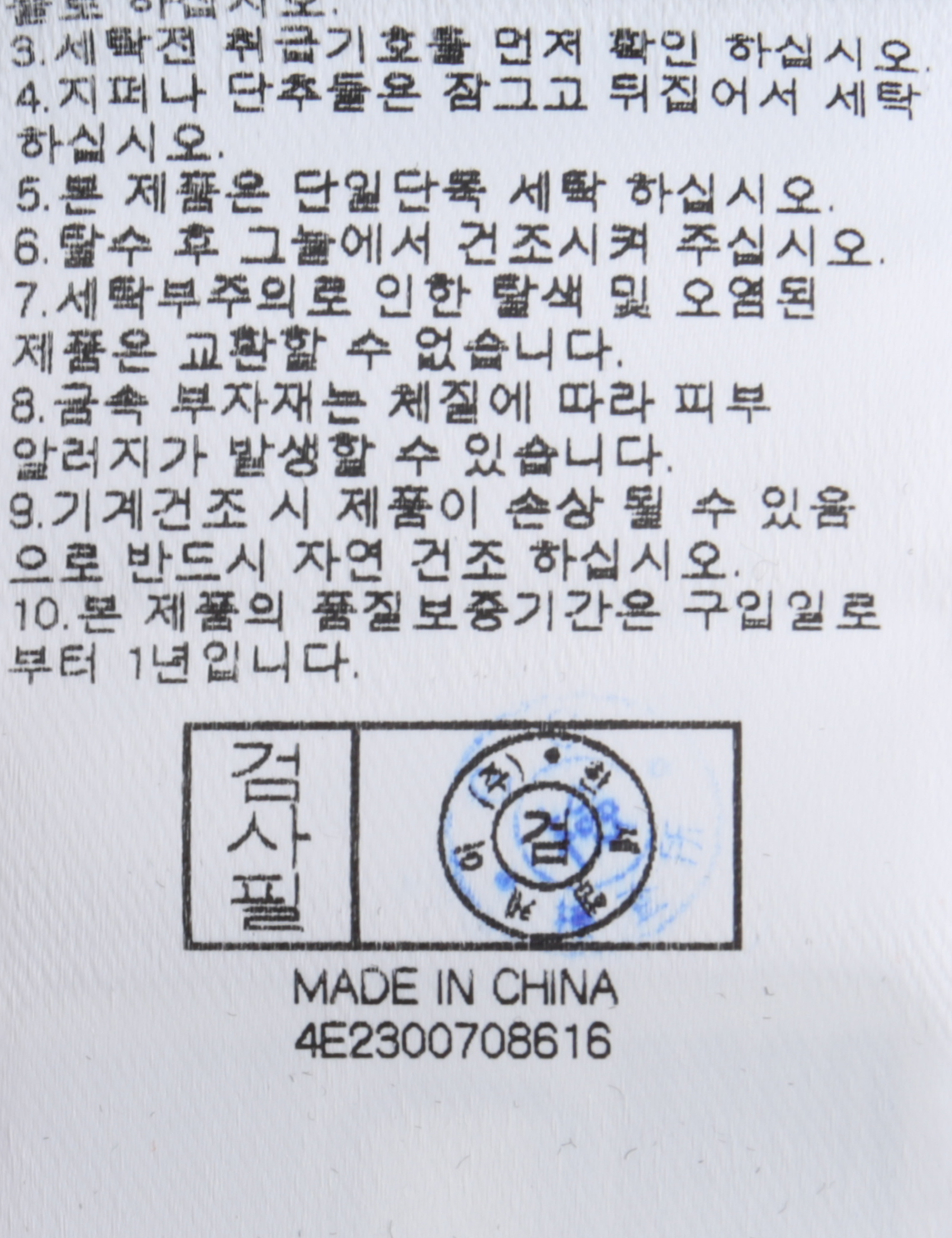| 세탁방법 및 취급시 주의사항 | 본 제품은 손세탁 하십시오.(케어라벨참고) |