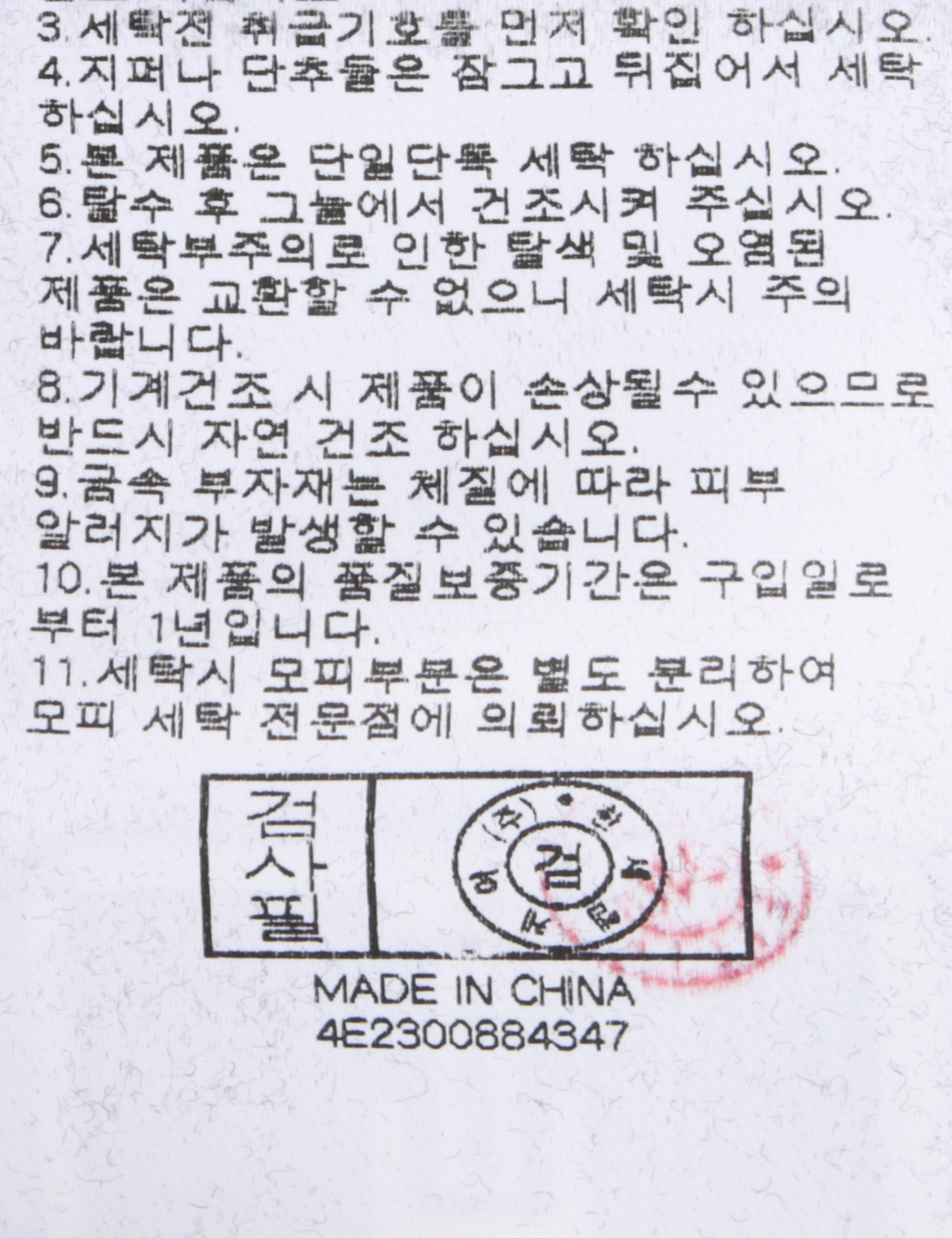 세탁방법 및 취급시 주의사항 중성세제로 단 시간내에 세탁하십시오.(케어라벨참고)