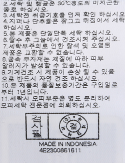 | 세탁방법 및 취급시 주의사항 | 본 제품은 손세탁 하십시오.(케어라벨참고) |