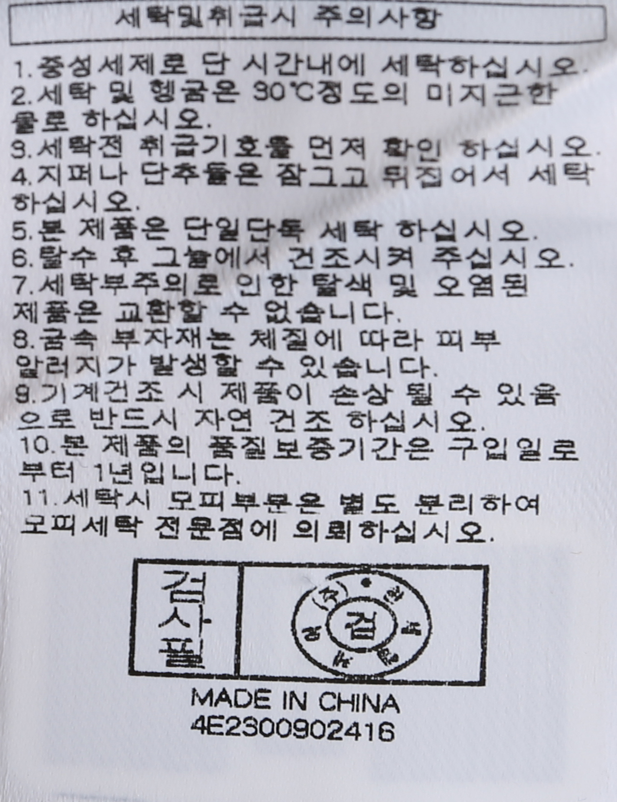 세탁방법 및 취급시 주의사항 본 제품은 손세탁 하십시오.(케어라벨참고)