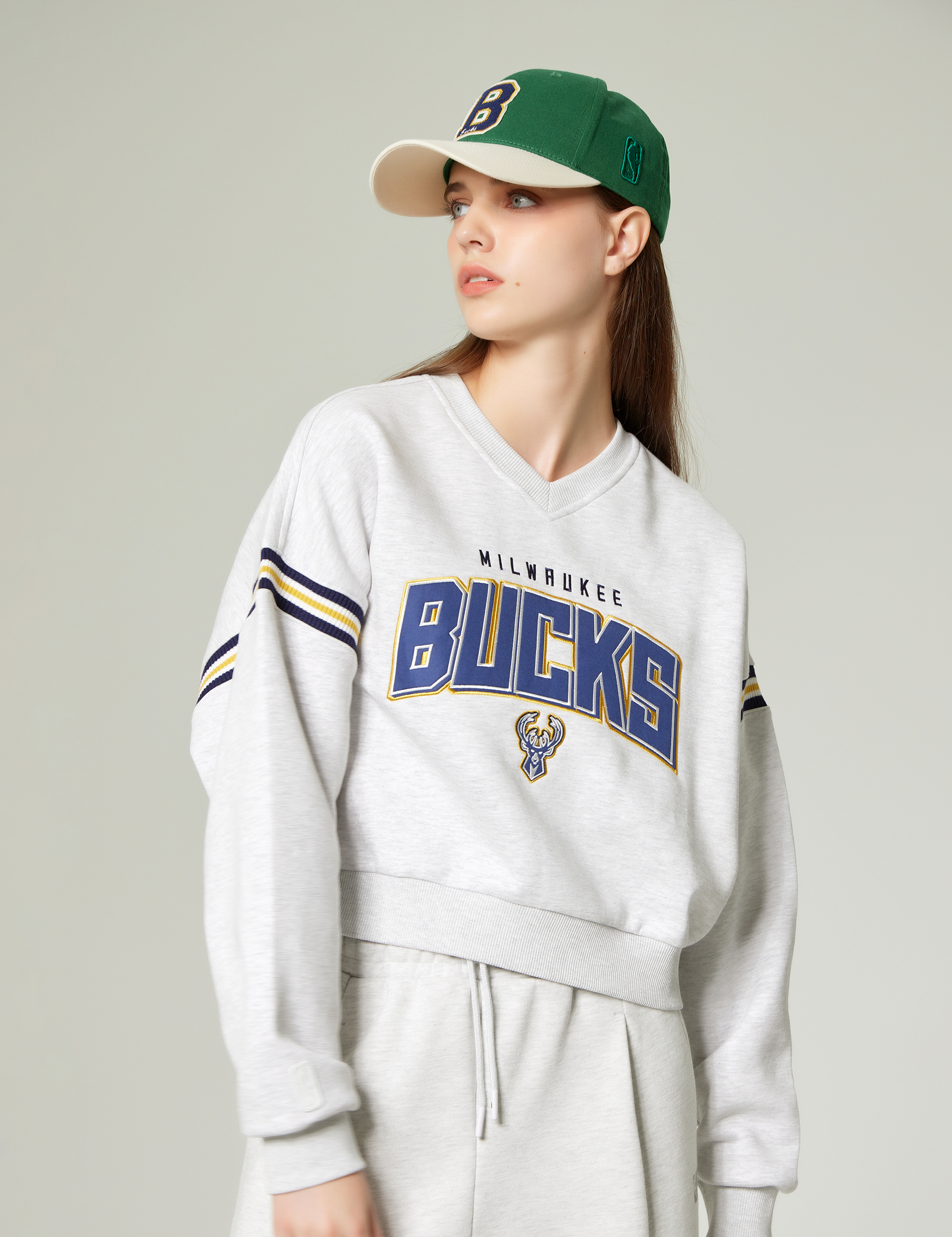 소매의 요꼬 배색과 아트웍에 멋스러운 컬러로 포인트를 준 스타일로 스트릿하고 캐주얼한 착장으로 연출할 수 있는 맨투맨