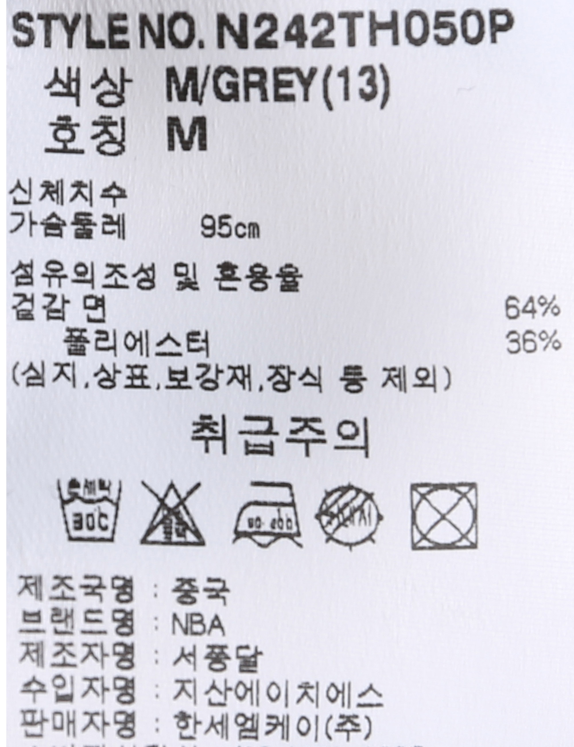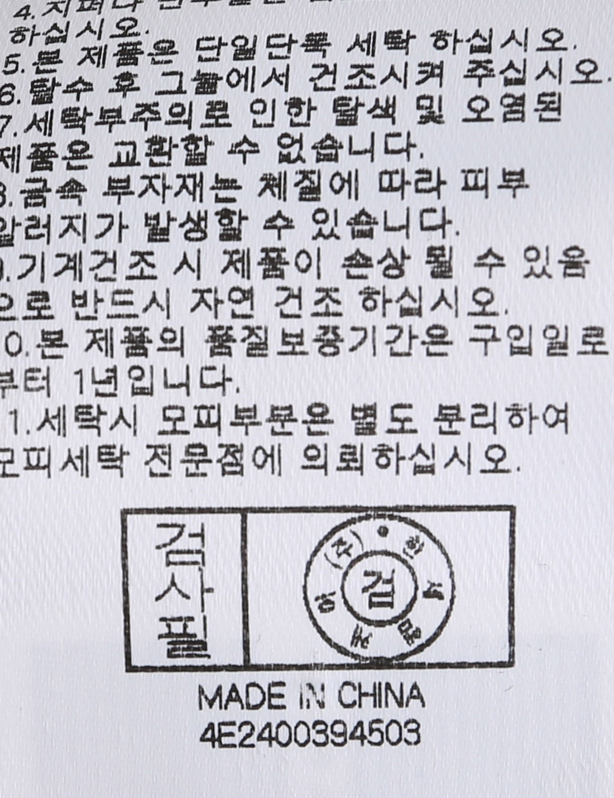 | 세탁방법 및 취급시 주의사항 | 본 제품은 손세탁 하십시오.(케어라벨참고) |