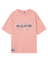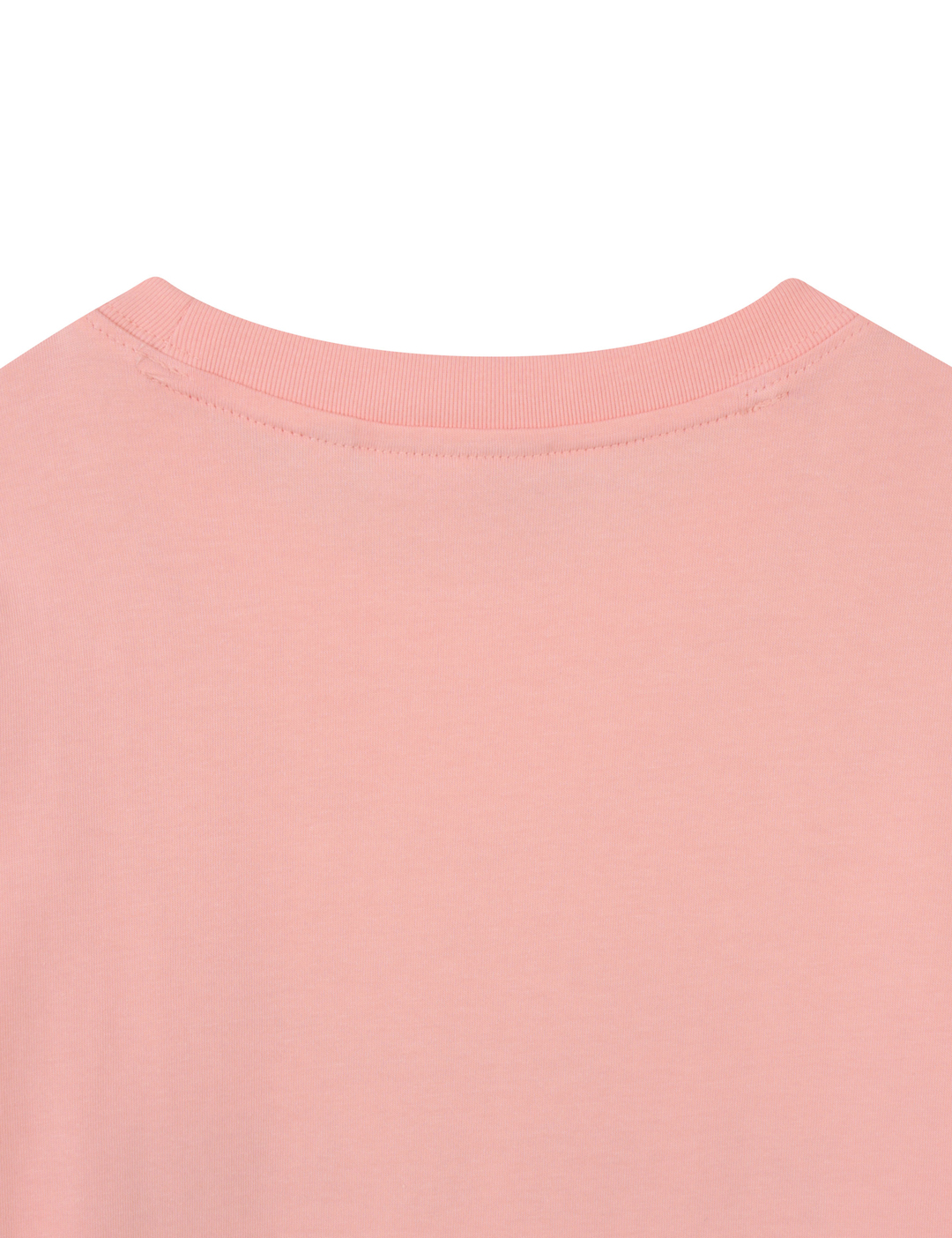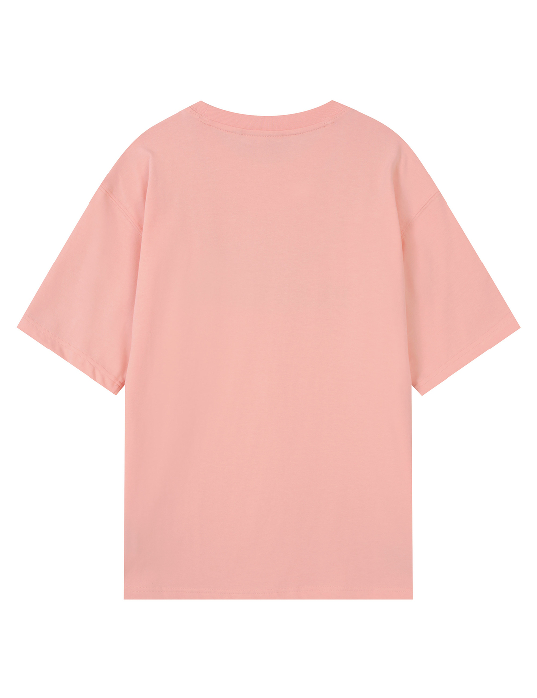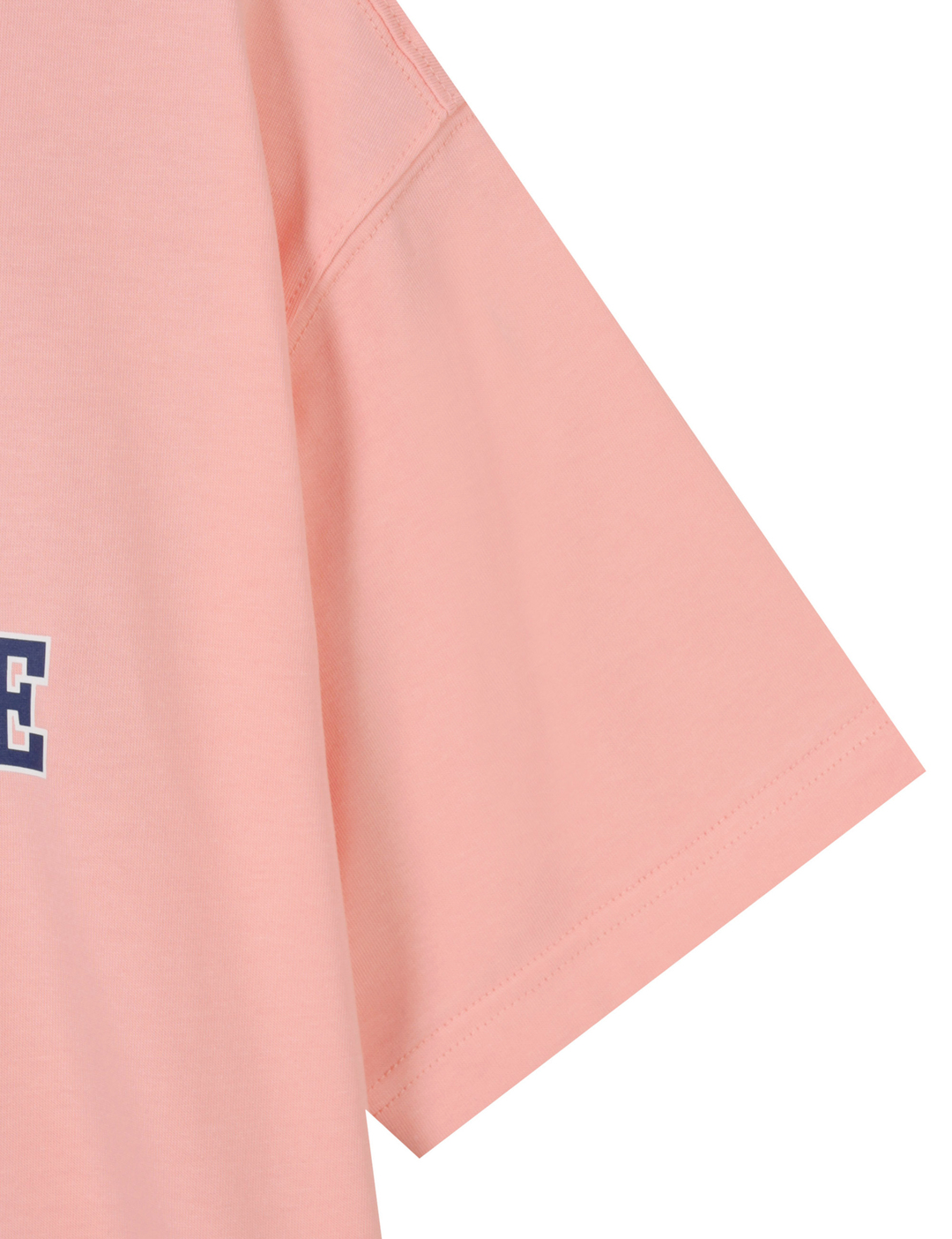 소프트한 터치감의 아스킨 원단을 사용하여 빅 로고 프린트와 직조 라벨로 포인트를 준 반팔 티셔츠 스타일