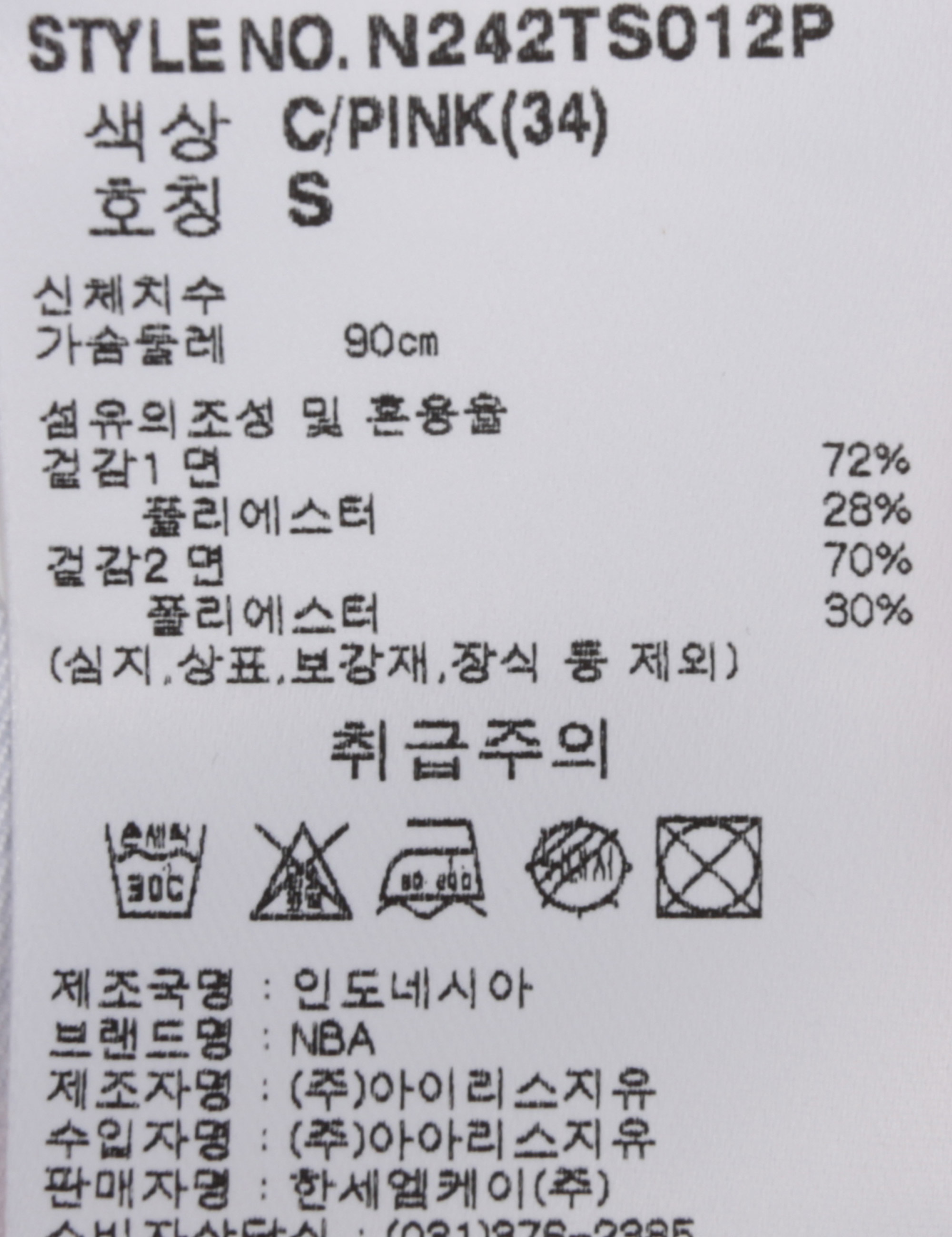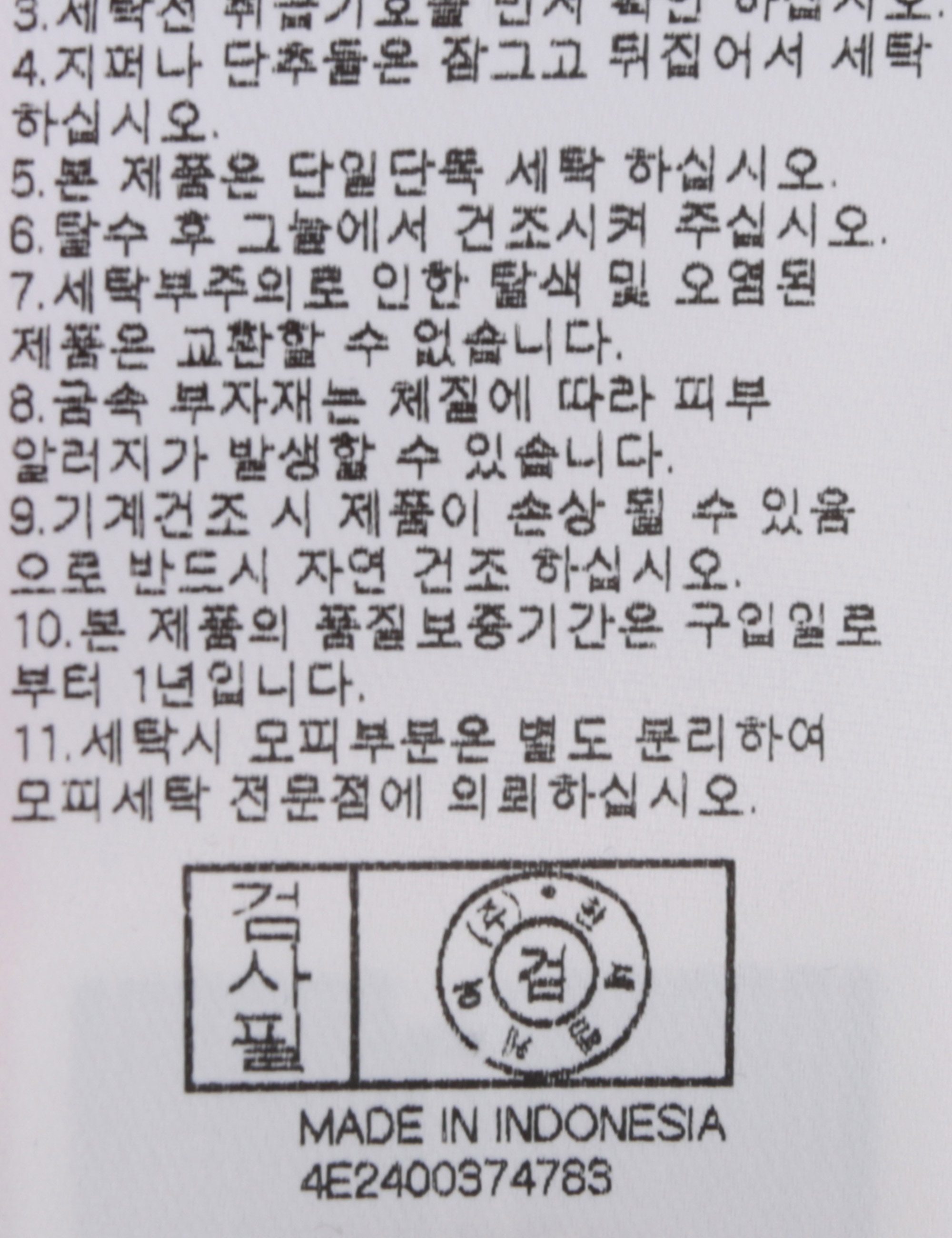 | 세탁방법 및 취급시 주의사항 | 본 제품은 손세탁 하십시오.(케어라벨참고) |