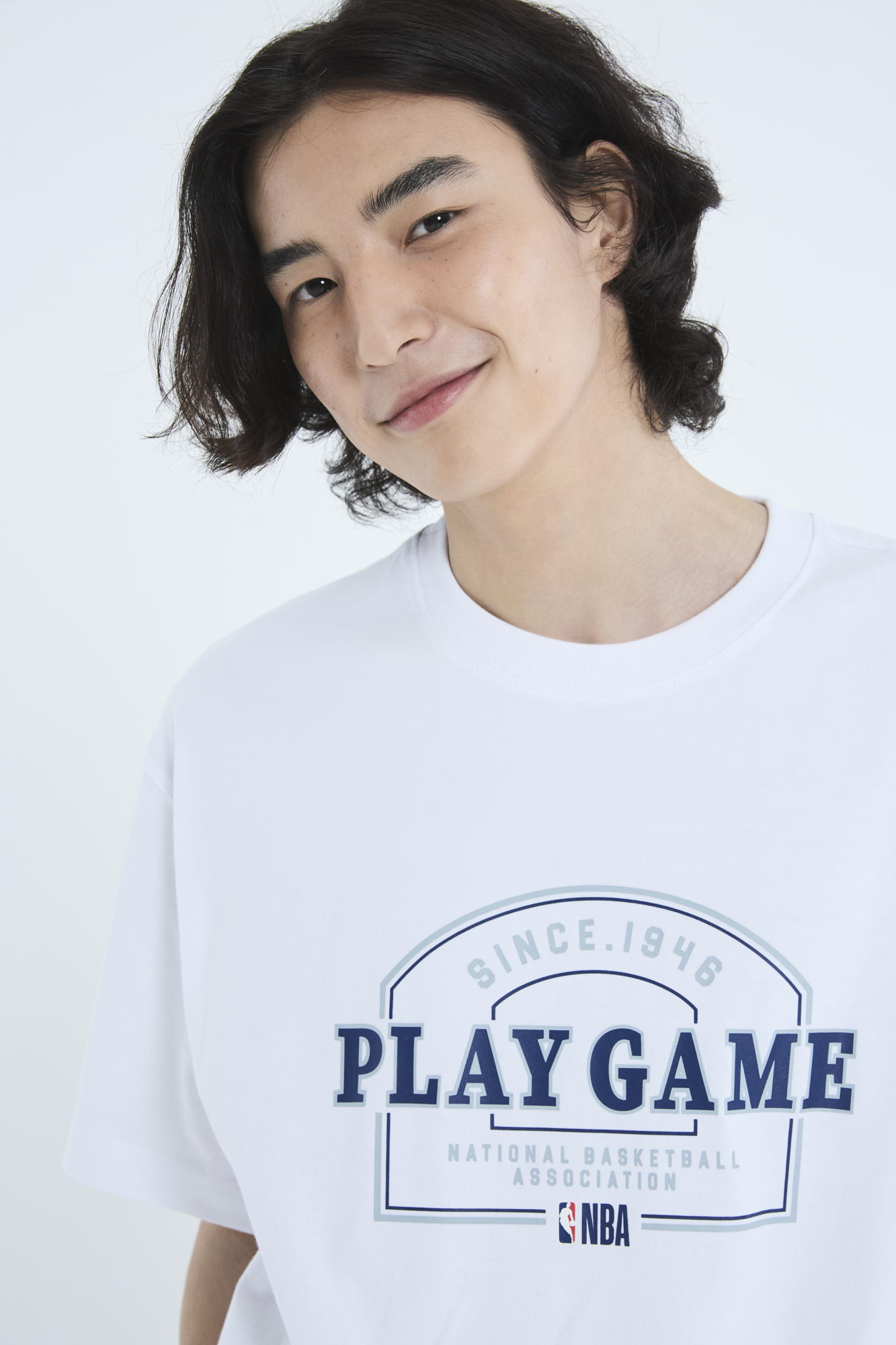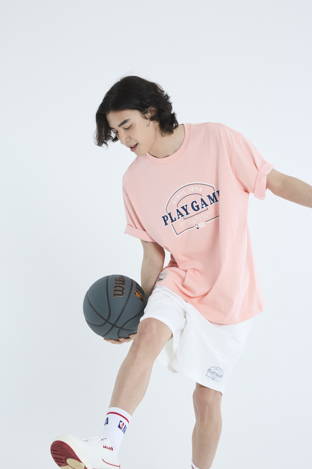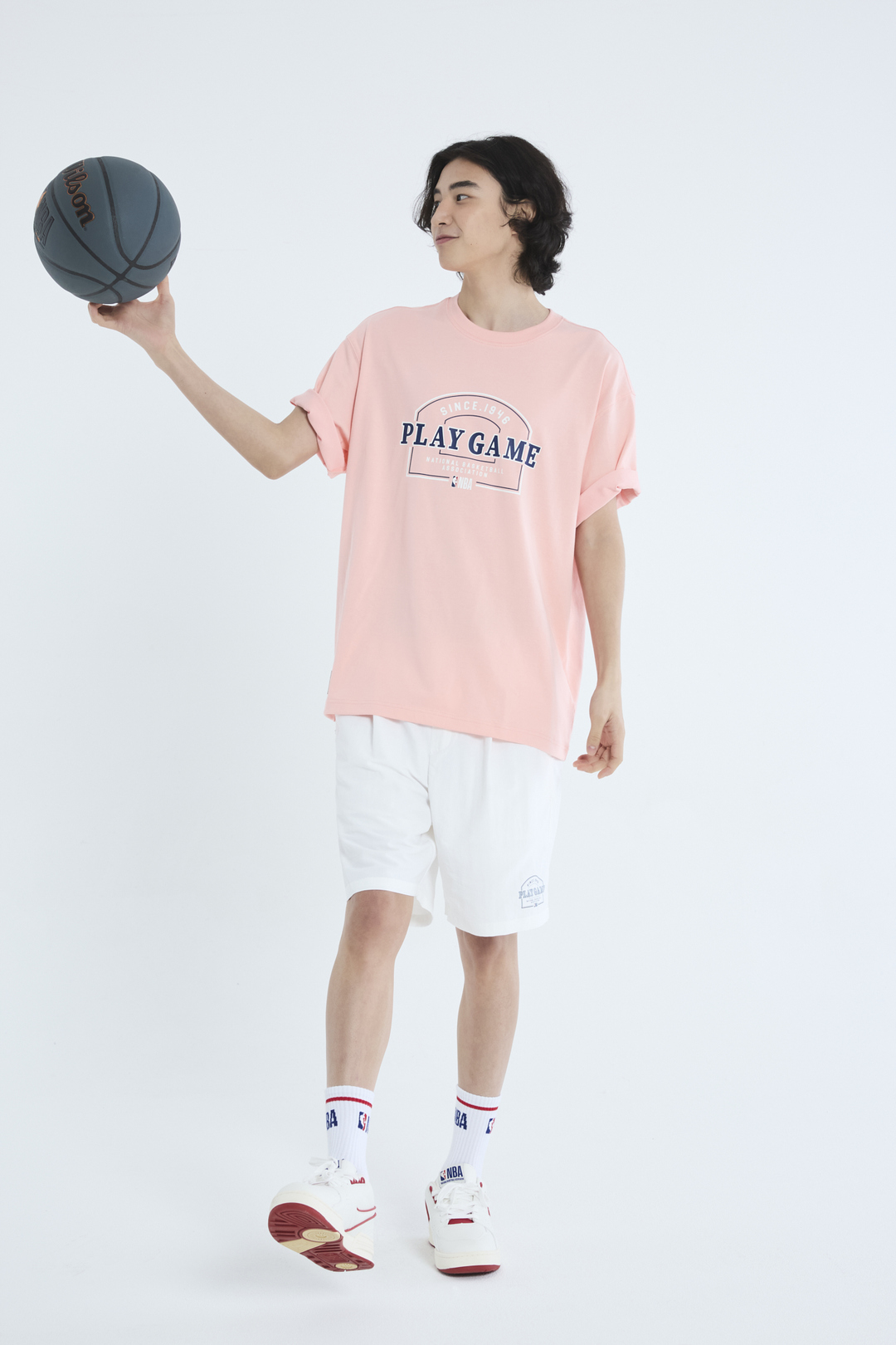 BACKBOARD를 상징하는 PLAY GAME 로고 프린트와 직조라벨을 사용하여 포인트를 준 스타일