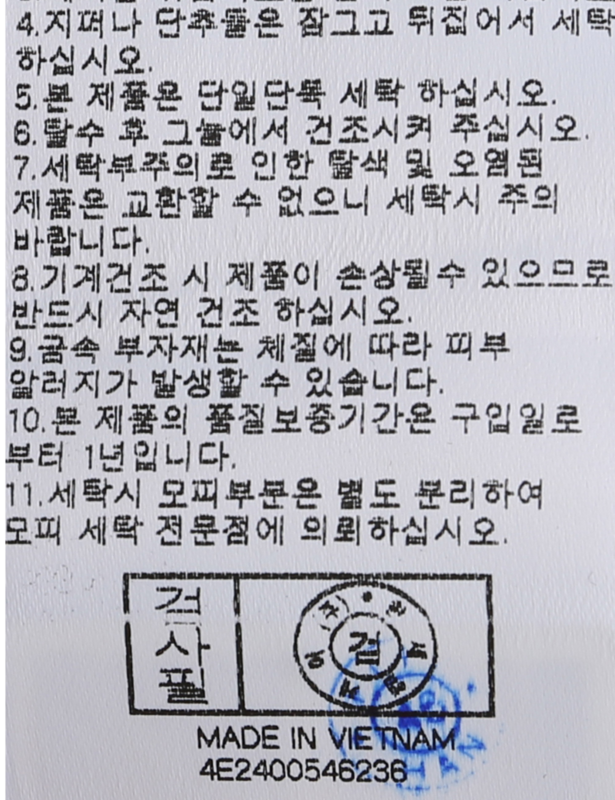 세탁방법 및 취급시 주의사항 중성세제로 단 시간내에 세탁하십시오.(케어라벨참고)