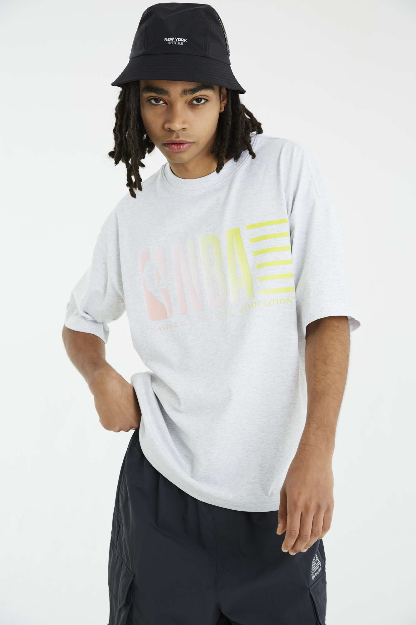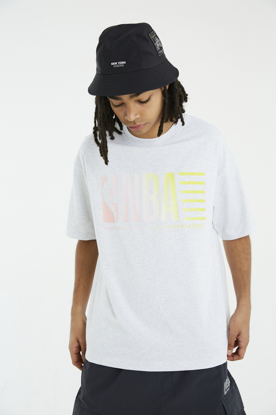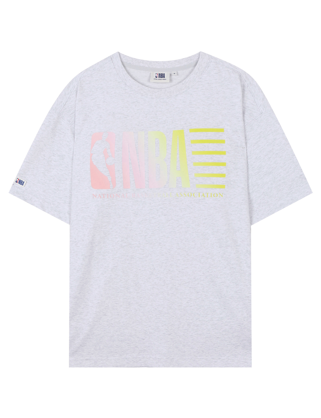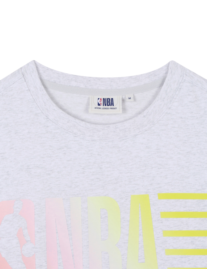 NBA 폰트에 파스텔 톤의 그라데이션 기법을 사용한 반팔티셔츠