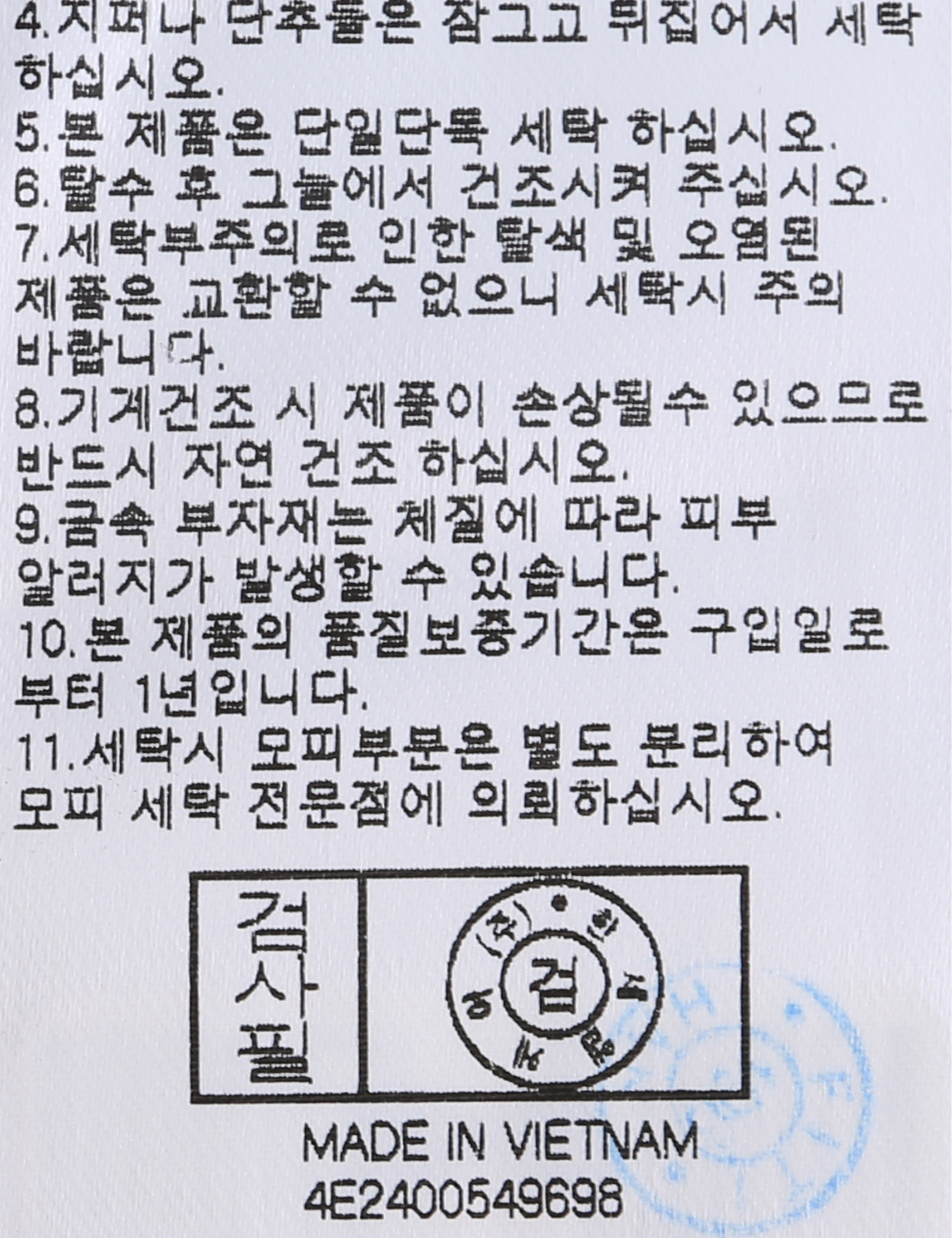 세탁방법 및 취급시 주의사항 중성세제로 단 시간내에 세탁하십시오.(케어라벨참고)