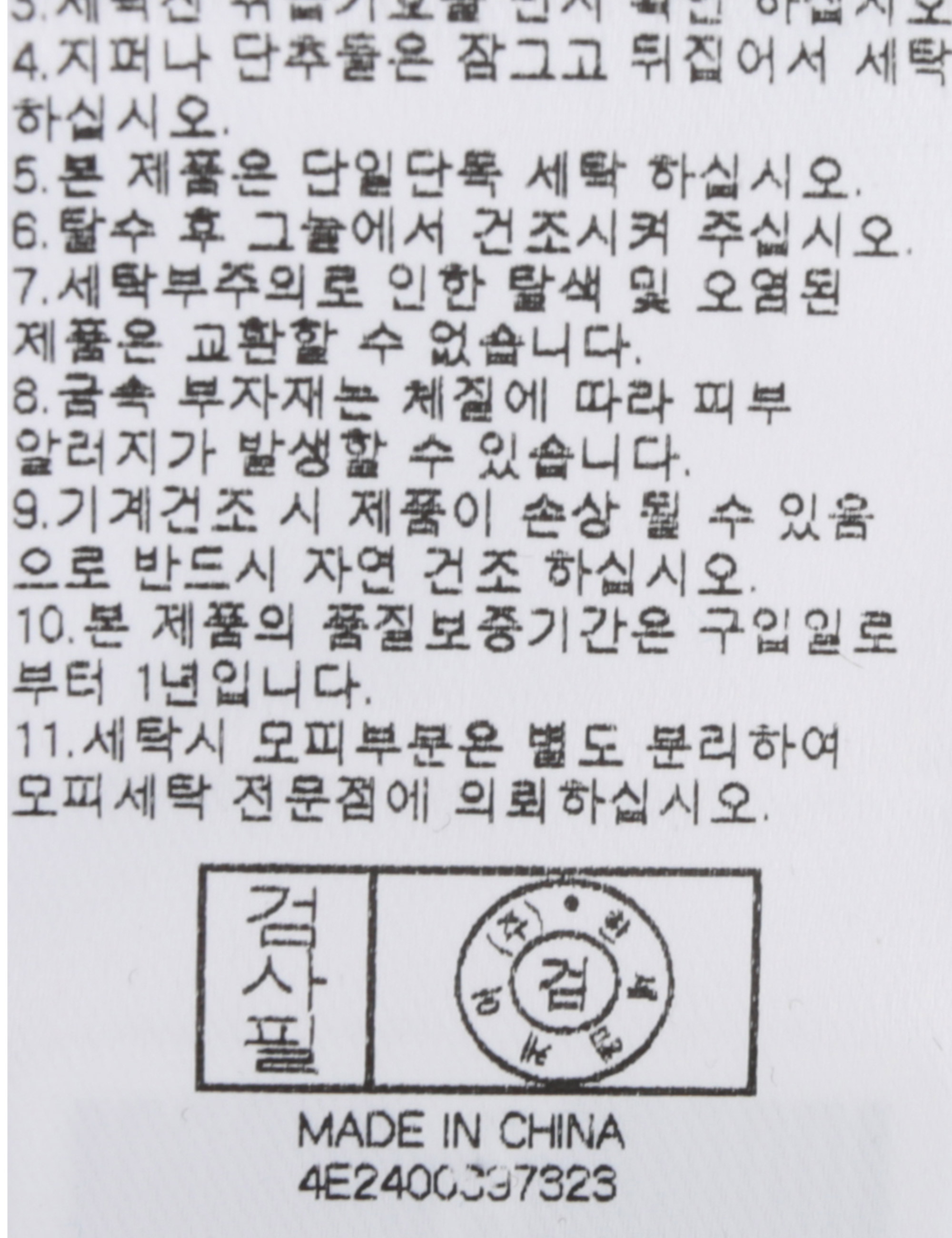 세탁방법 및 취급시 주의사항 본 제품은 손세탁 하십시오.(케어라벨참고)