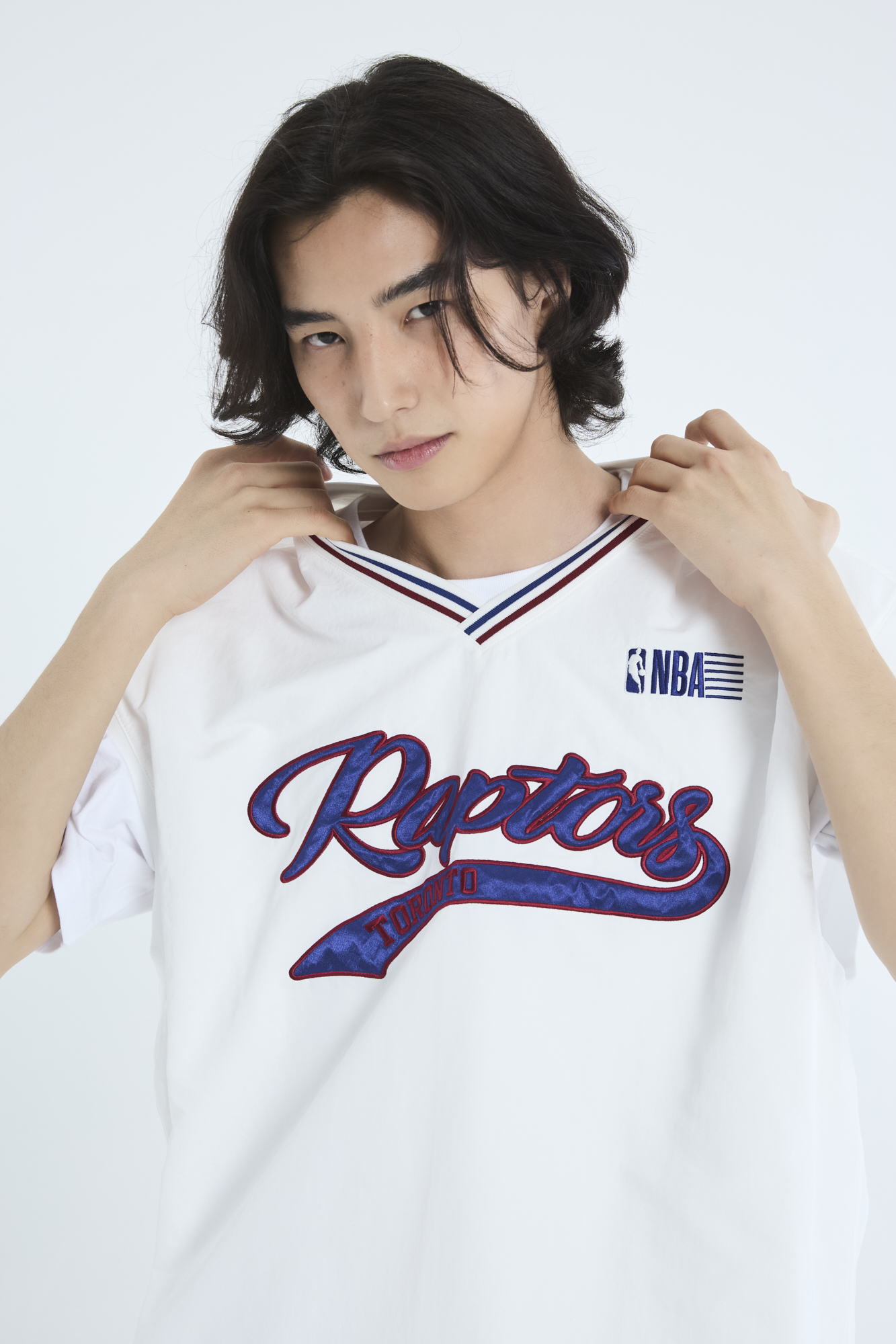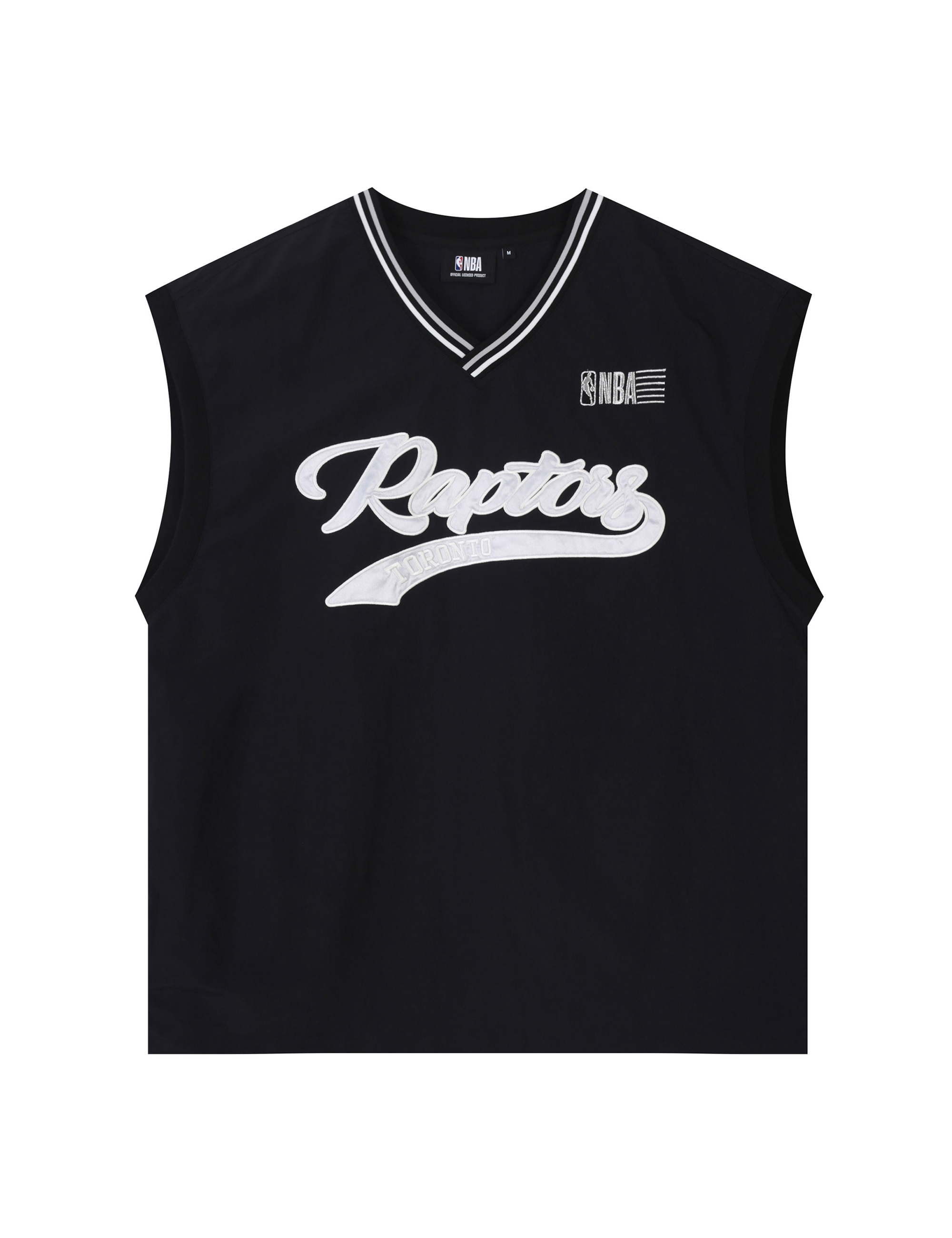 헤리티지 무드의 토론토 랩터스 레터링 그래픽의 V넥 슬리브리스 피스테