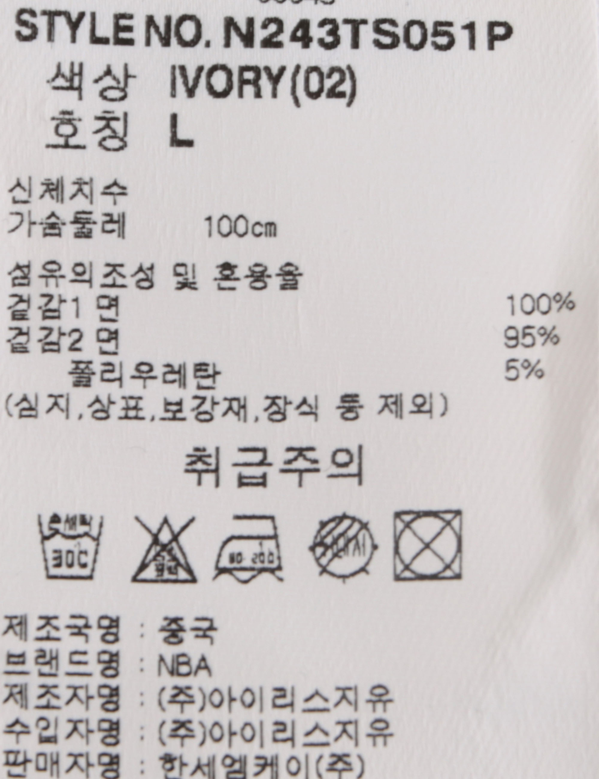 | 상품명 | NBA HWC 반집업 맨투맨(N243TS051P) |