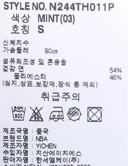 | 세탁방법 및 취급시 주의사항 | 본 제품은 손세탁 하십시오.(케어라벨참고) |