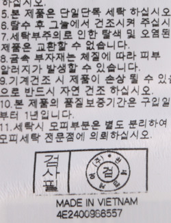 | 세탁방법 및 취급시 주의사항 | 본 제품은 손세탁 하십시오.(케어라벨참고) |
