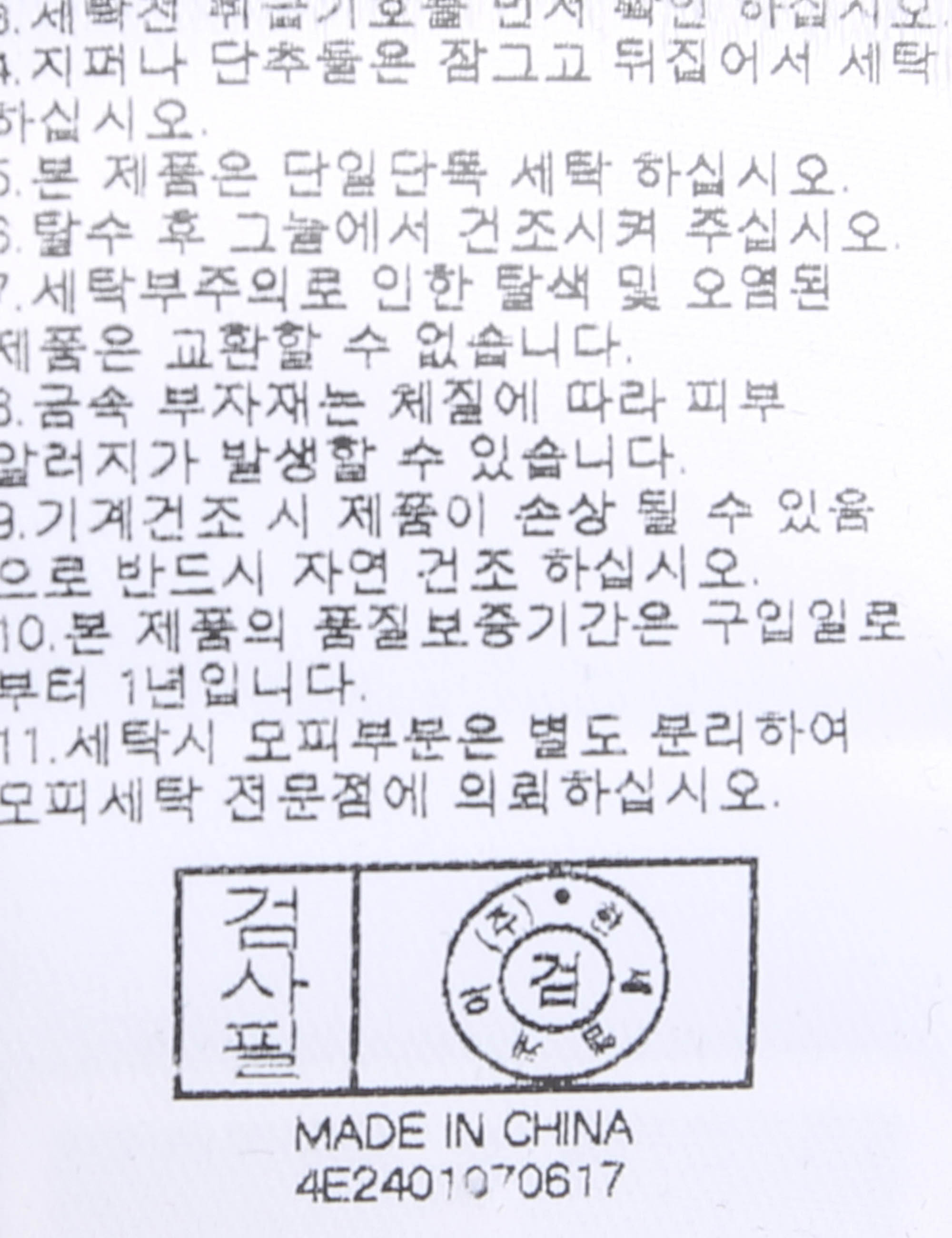 세탁방법 및 취급시 주의사항 본 제품은 손세탁 하십시오.(케어라벨참고)