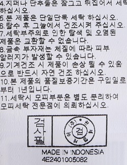세탁방법 및 취급시 주의사항 본 제품은 손세탁 하십시오.(케어라벨참고)