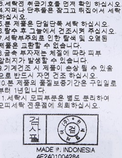 | 세탁방법 및 취급시 주의사항 | 본 제품은 손세탁 하십시오.(케어라벨참고) |