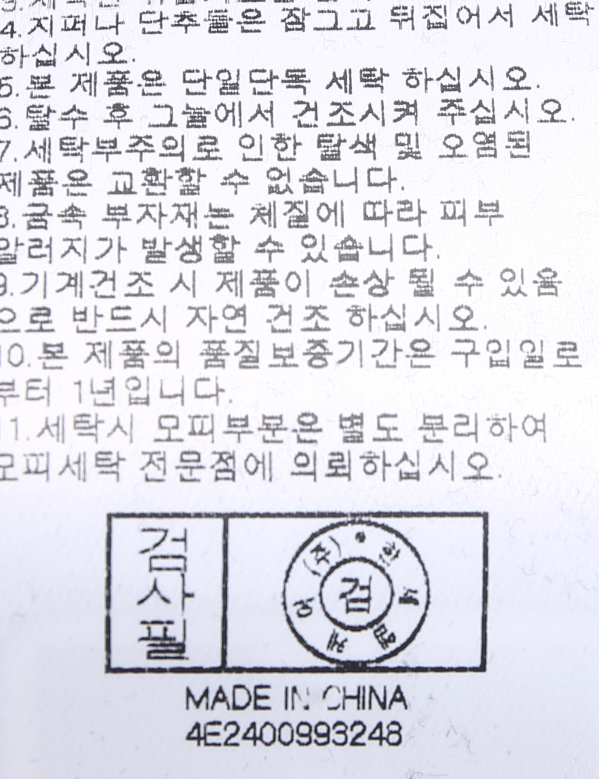 | 세탁방법 및 취급시 주의사항 | 본 제품은 손세탁 하십시오.(케어라벨참고) |