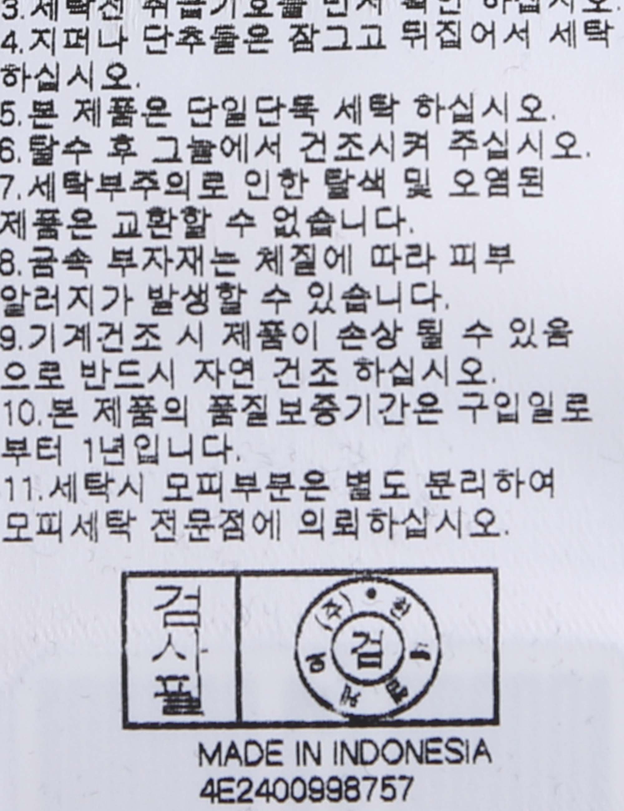| 세탁방법 및 취급시 주의사항 | 본 제품은 손세탁 하십시오.(케어라벨참고) |