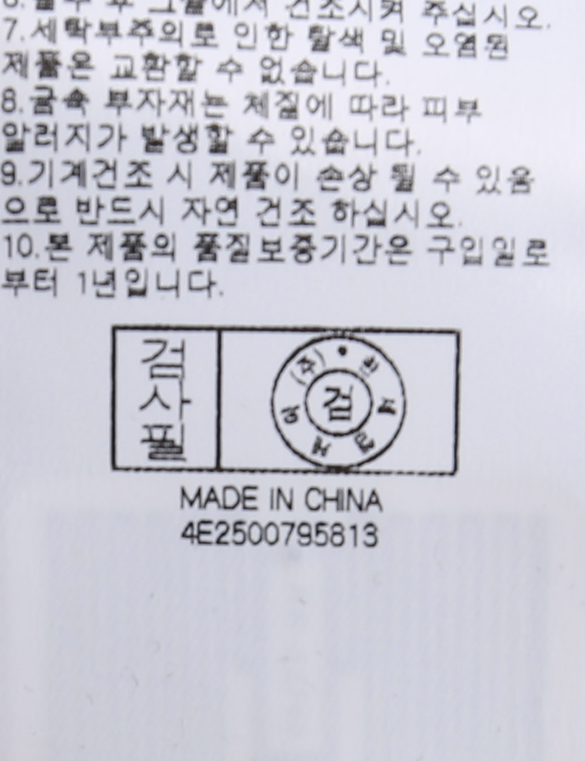 | 세탁방법 및 취급시 주의사항 | 본 제품은 손세탁 하십시오.(케어라벨참고) |