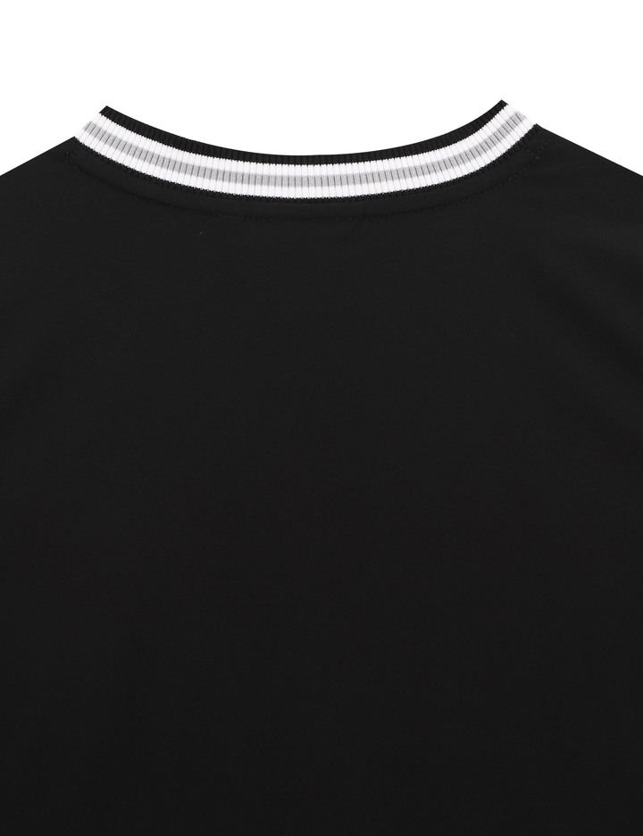 - 가슴에 아플리케 기법을 활용한 아트웍과 아트웍 컬러에 맞춘 넥 스트라이프 배색이 포인트