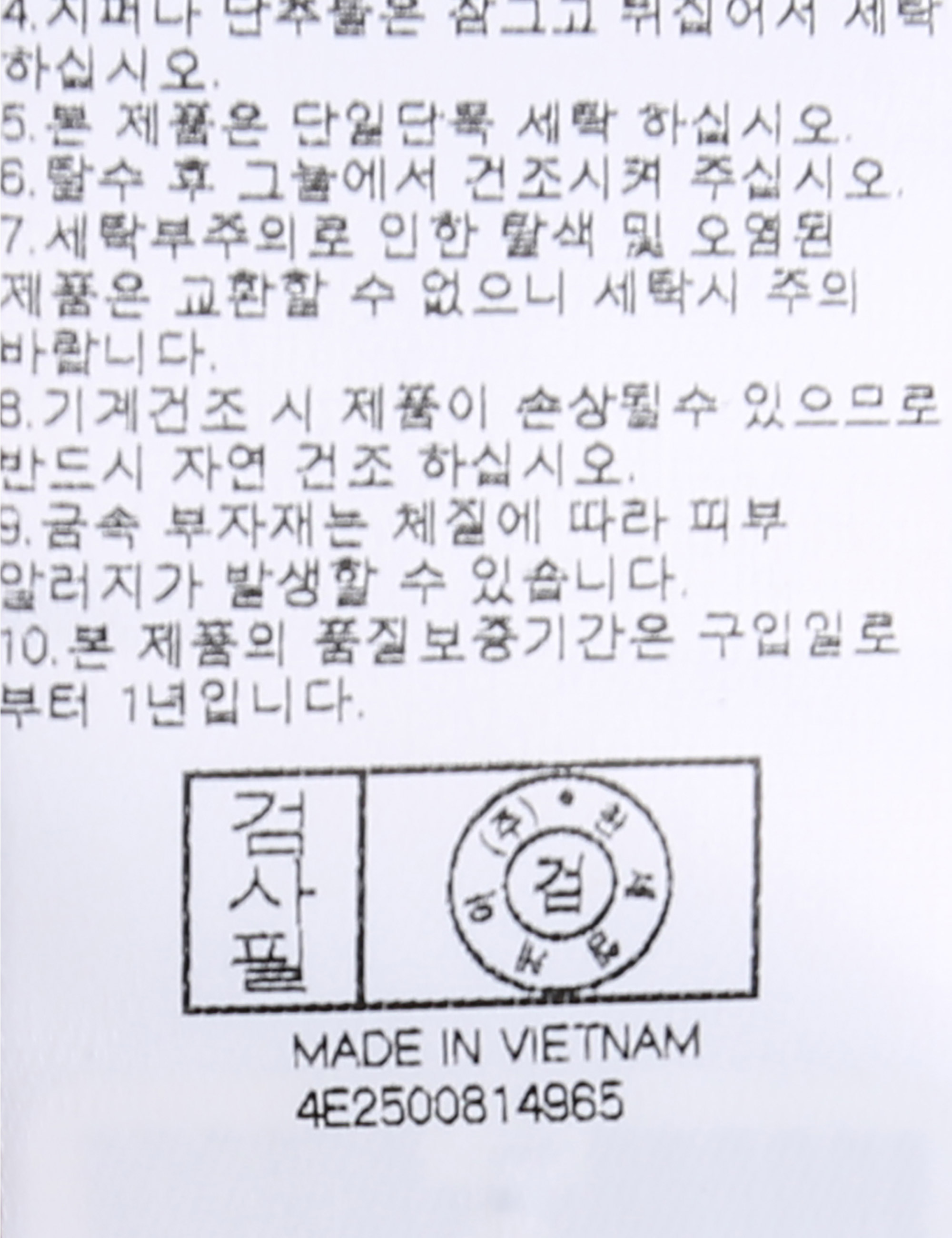 세탁방법 및 취급시 주의사항 중성세제로 단 시간내에 세탁하십시오.(케어라벨참고)