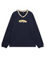 - 가슴에 팀 레터를 아플리케 작업하여 클래식한 무드를 더한 아이템으로 다양한 아이템에 다양한 스타일로 연출이 가능함