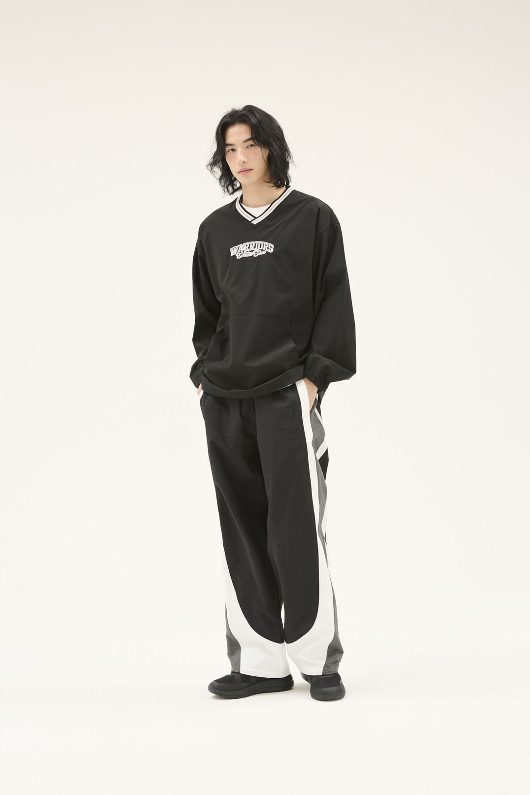 - 전체적으로 넉넉한 사이즈로 작업 된 오버핏으로 편안하게 착장이 가능하면서 스트릿하게 연출가능하고
