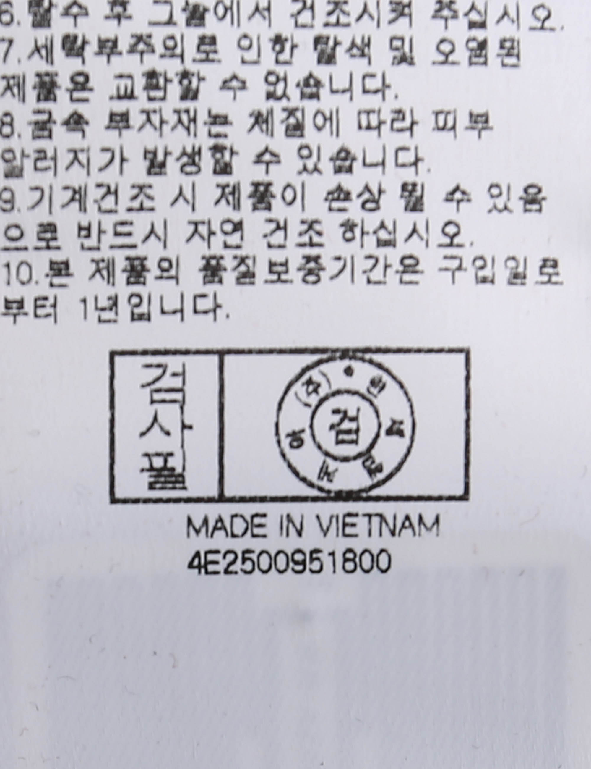 | 세탁방법 및 취급시 주의사항 | 본 제품은 손세탁 하십시오.(케어라벨참고) |