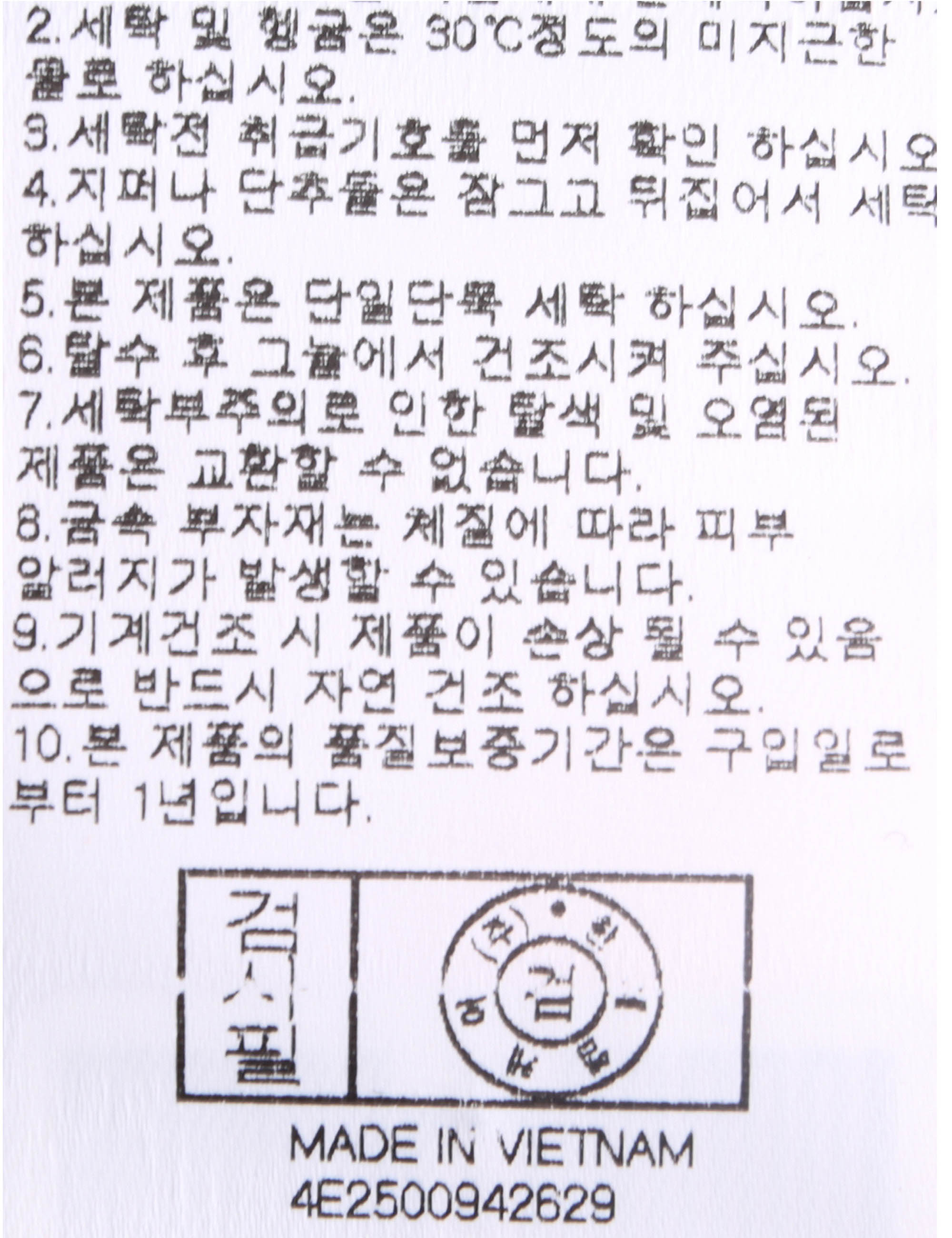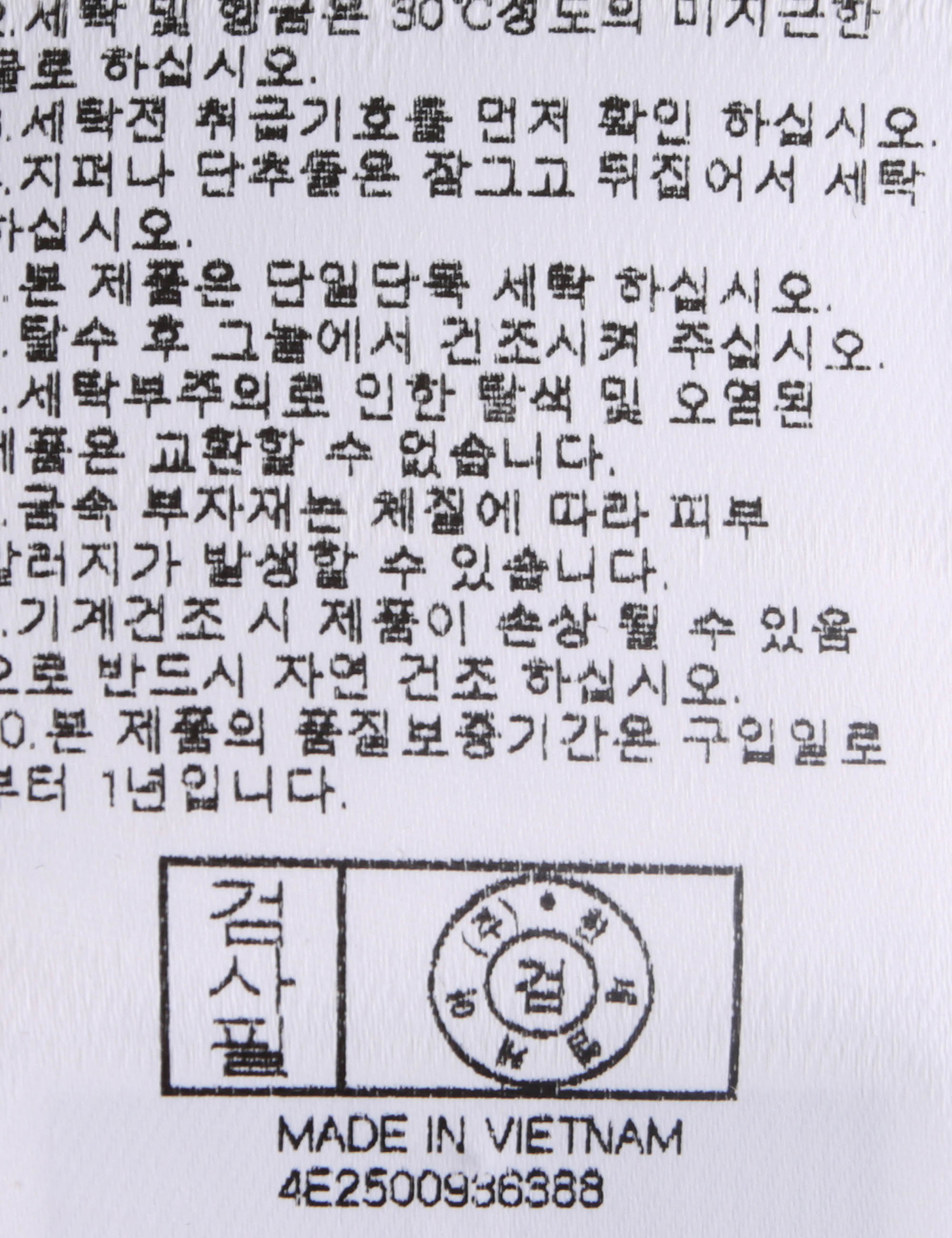 | 세탁방법 및 취급시 주의사항 | 본 제품은 손세탁 하십시오.(케어라벨참고) |