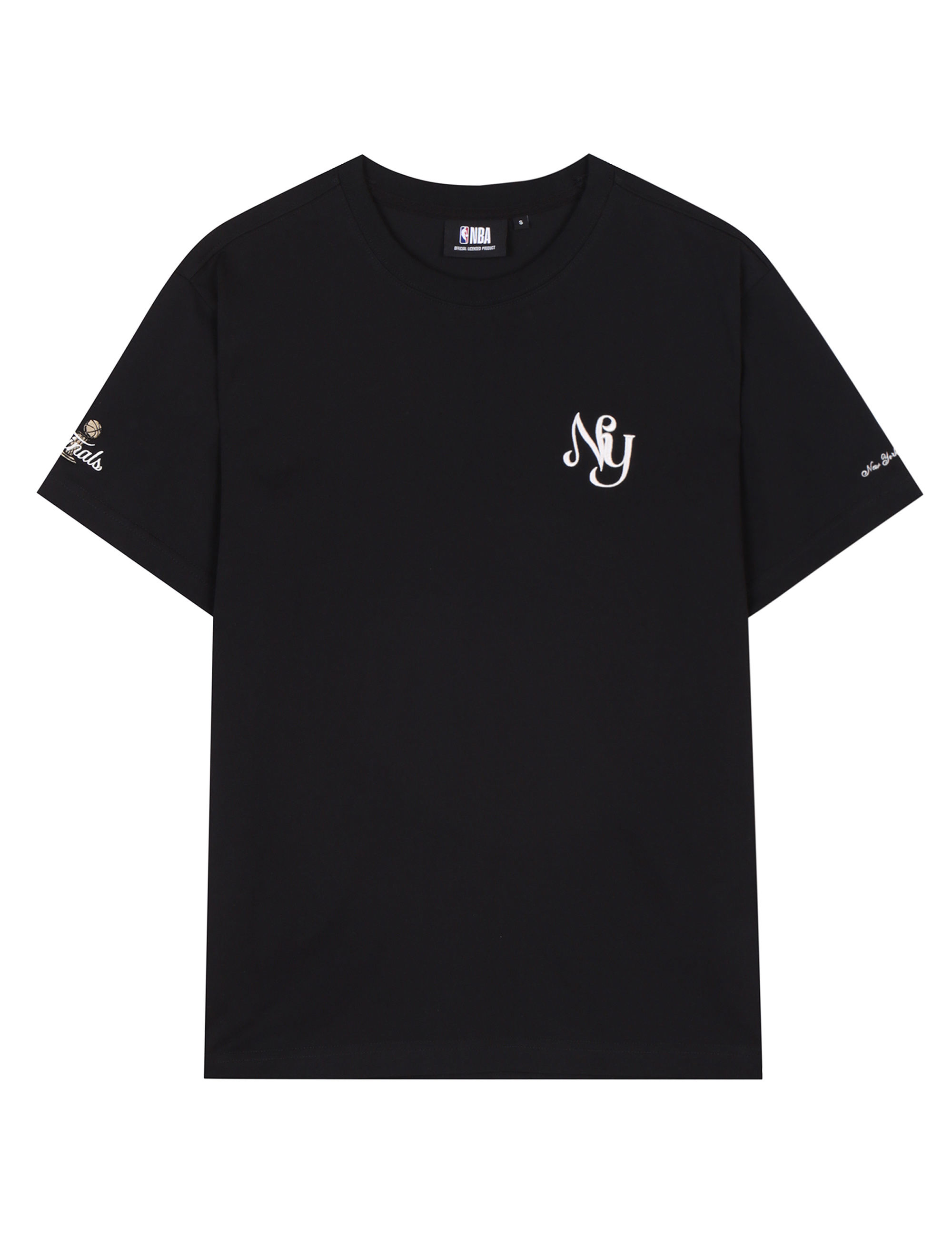 - 왼가슴 약어 NY 레터링은 체인모양의 자수 아플리케가 놓여져있으며 소매에는 파이널스 트로피 자수가 포인트