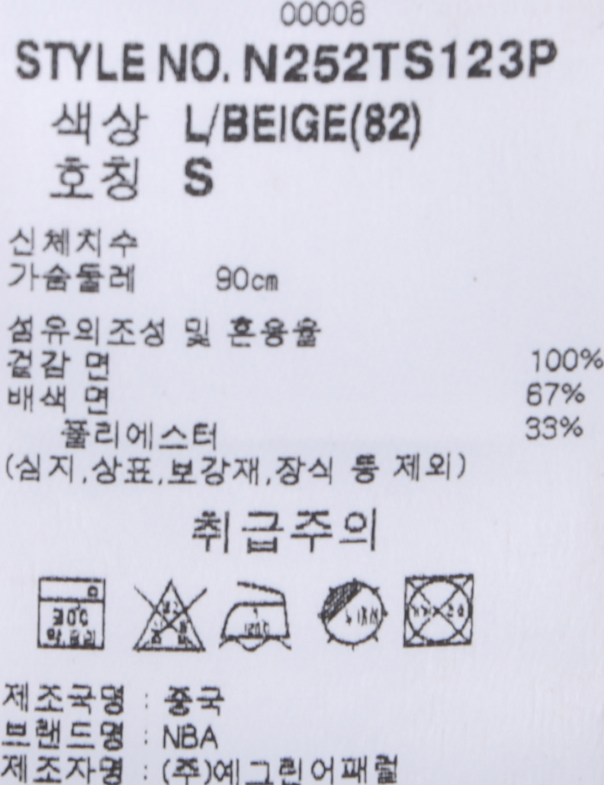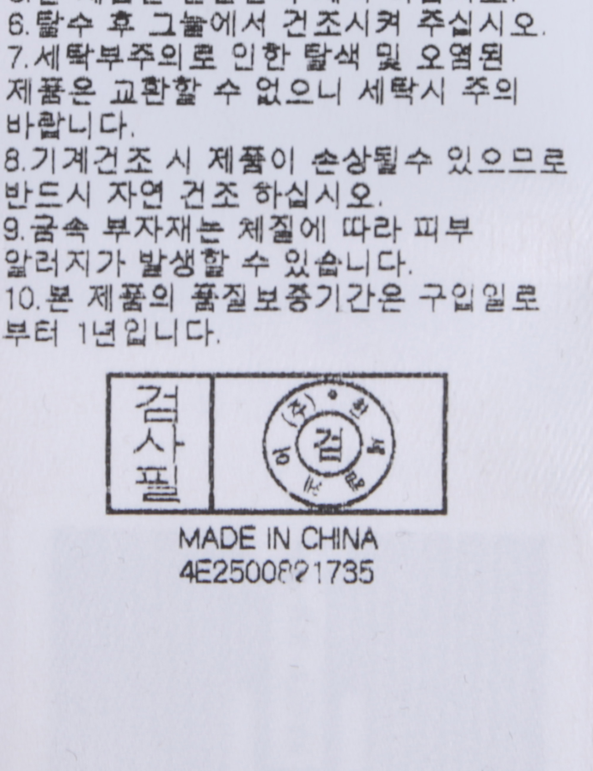 | 세탁방법 및 취급시 주의사항 | 중성세제로 단 시간내에 세탁하십시오.(케어라벨참고) |