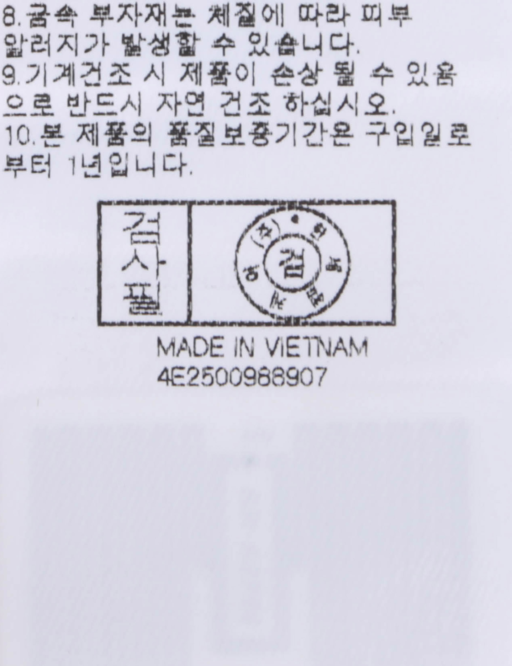 세탁방법 및 취급시 주의사항 본 제품은 손세탁 하십시오.(케어라벨참고)