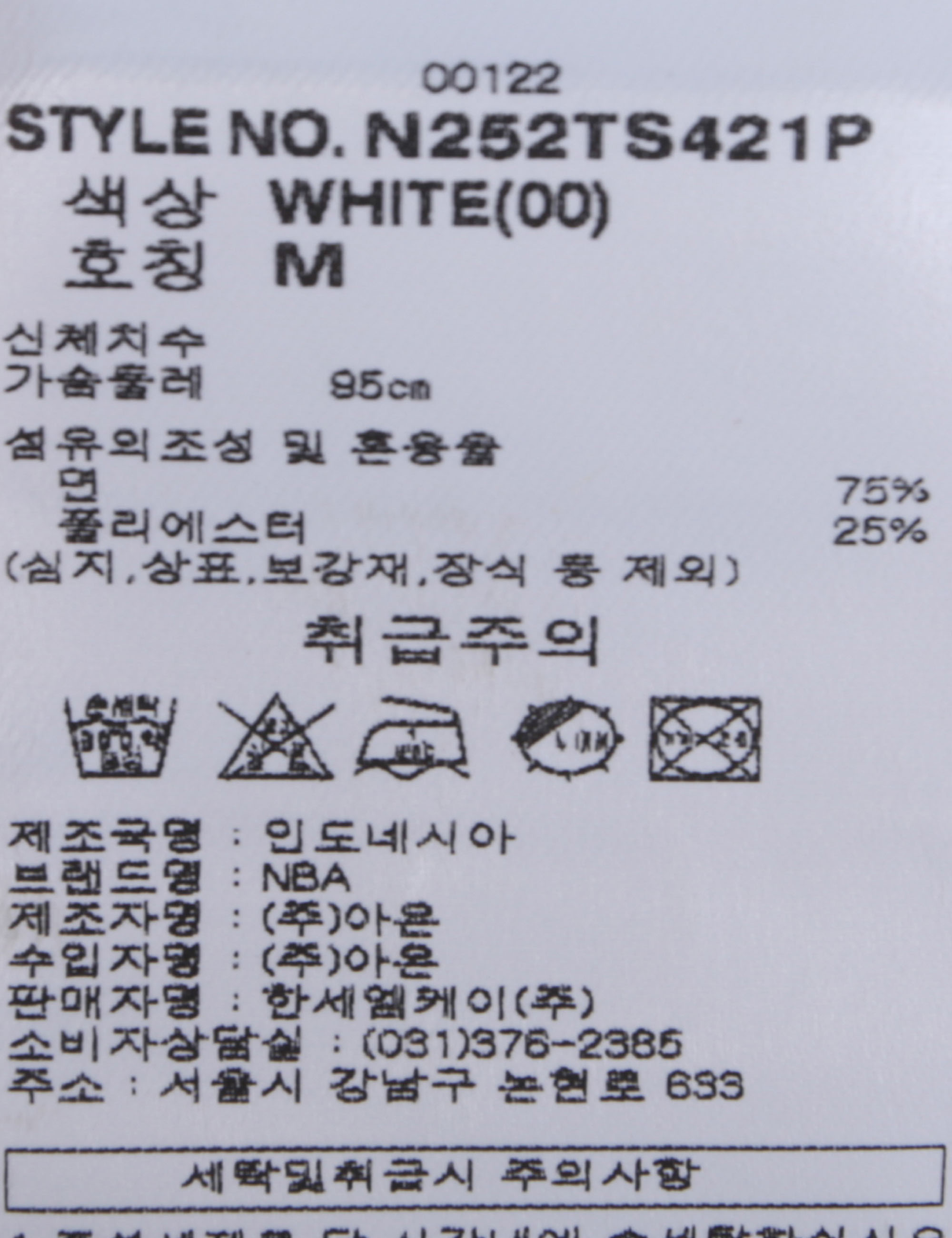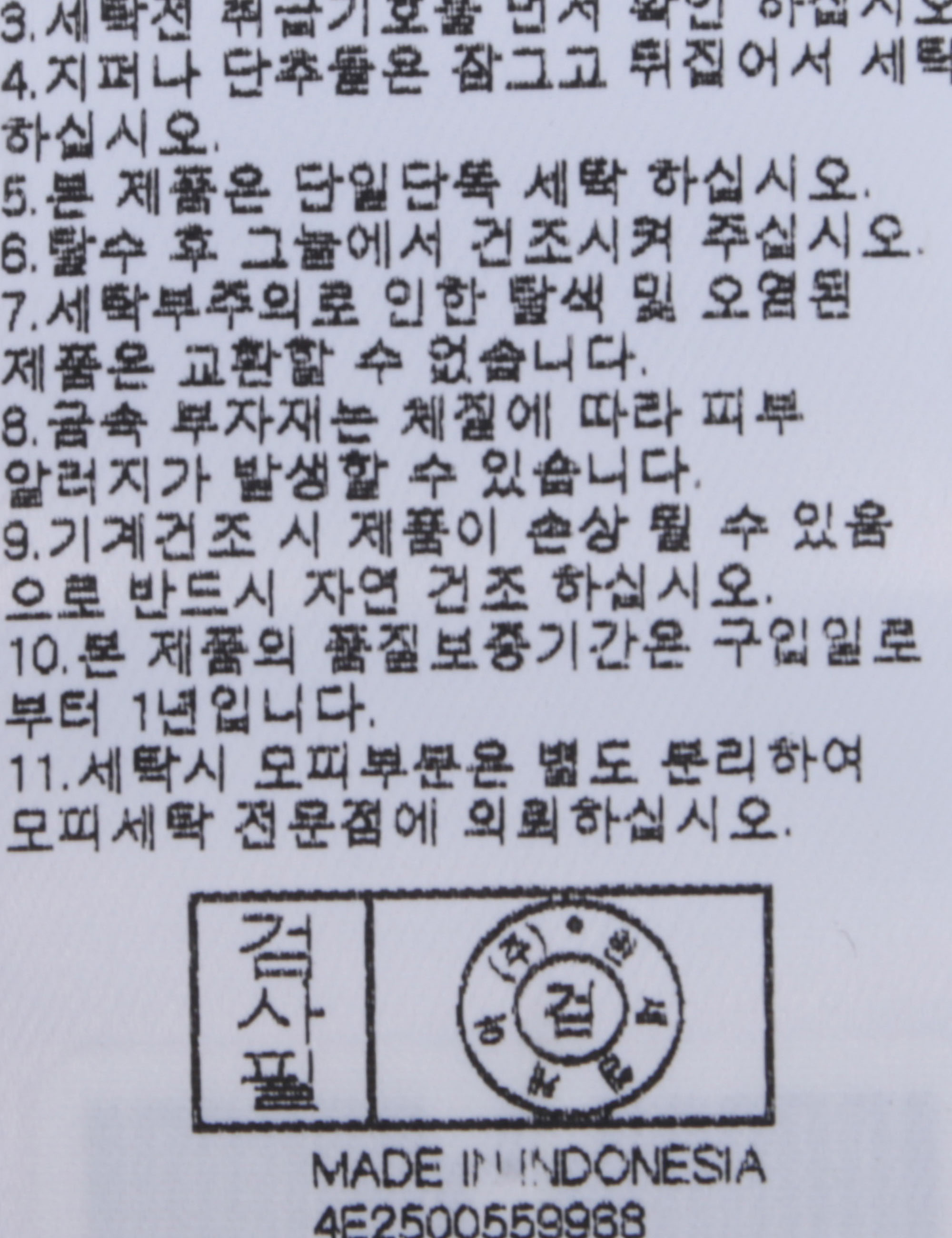 | 세탁방법 및 취급시 주의사항 | 본 제품은 손세탁 하십시오.(케어라벨참고) |