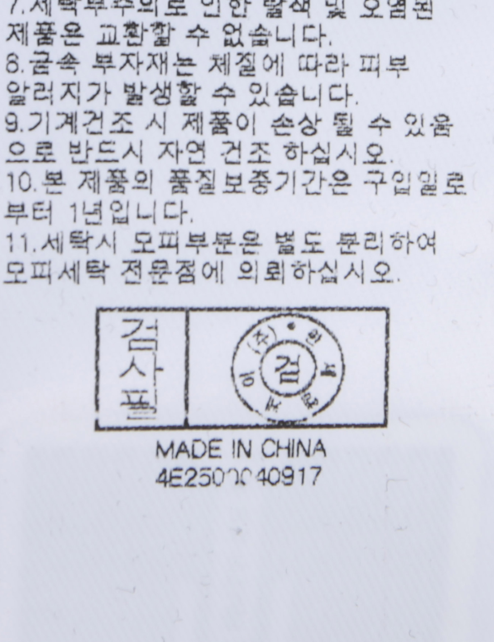 | 세탁방법 및 취급시 주의사항 | 본 제품은 손세탁 하십시오.(케어라벨참고) |