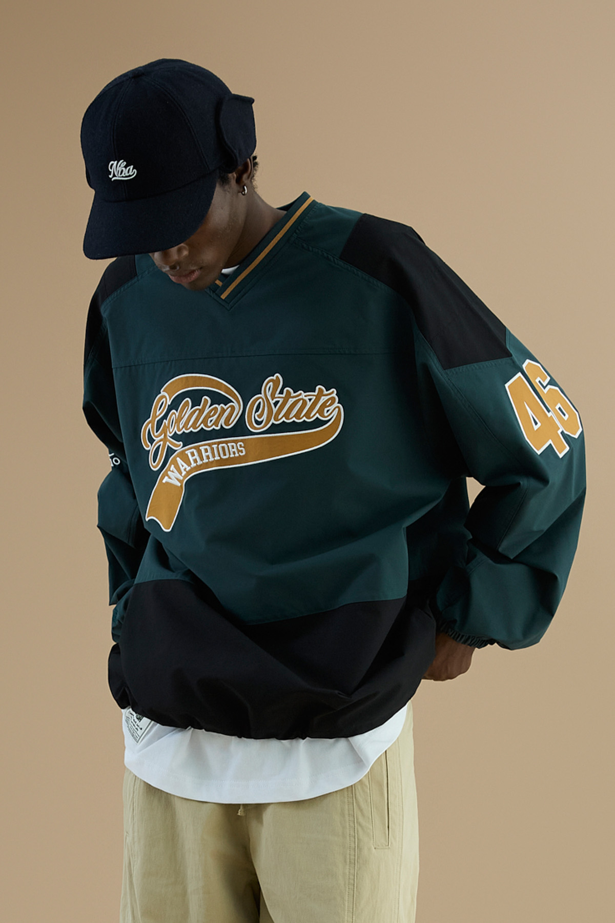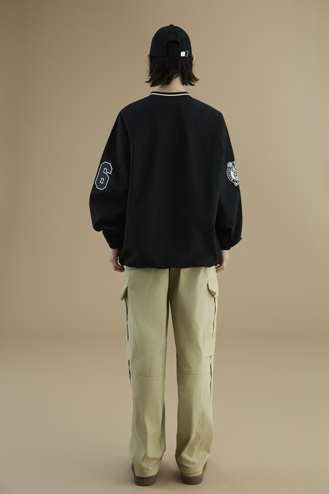 - 전체적으로 넉넉한 사이즈로 작업 된 오버핏으로 편안하게 착장이 가능하면서 스트릿하게 연출가능